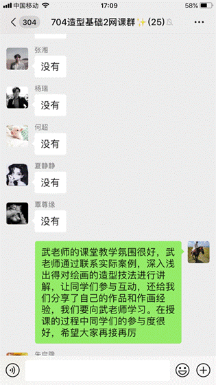 2. 在课后,老师们同样与学生保持积极的联系,随时应对同学们的各种问题,对于线上教学相关的问题以及专业问题进行沟通和解答,让我们的教学工作不因距离的原因而“搁浅”。线上教学虽然有他的局限性,但我们将它的优点发挥到极致,促进课堂教学工作保质保量地完成。