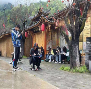 西安翻译学院副校长兼教务长齐玉水为了不耽误大家的中午休息时间在午饭间隙做了讲话:齐校长表扬了同学们这段时间通过老师的教学与自己的努力在专业技能上取得的进步,并激励同学们再接再厉,不断超越自我,创作出更多的优秀写生作品。并指导老师的辛勤付出表示了感谢,希望老师继续尽职尽责圆满完成本次写生实践教学活动。