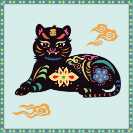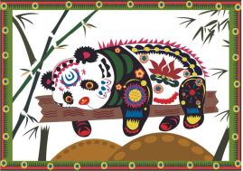 创作表现:本作品主要是以剪纸的形式对动物的外轮廓进行提取和表现,以表现动物的特点;同时融合库淑兰剪纸的色彩搭配,利用饱和度高的颜色,展示整个画面的生动与活泼,体现动物的生机,同时利用动物特征与给人的感觉进行颜色的搭配;最后加以库淑兰剪纸纹样的填充,使动物形象更加生动,创作出具有地域特色的文创作品。