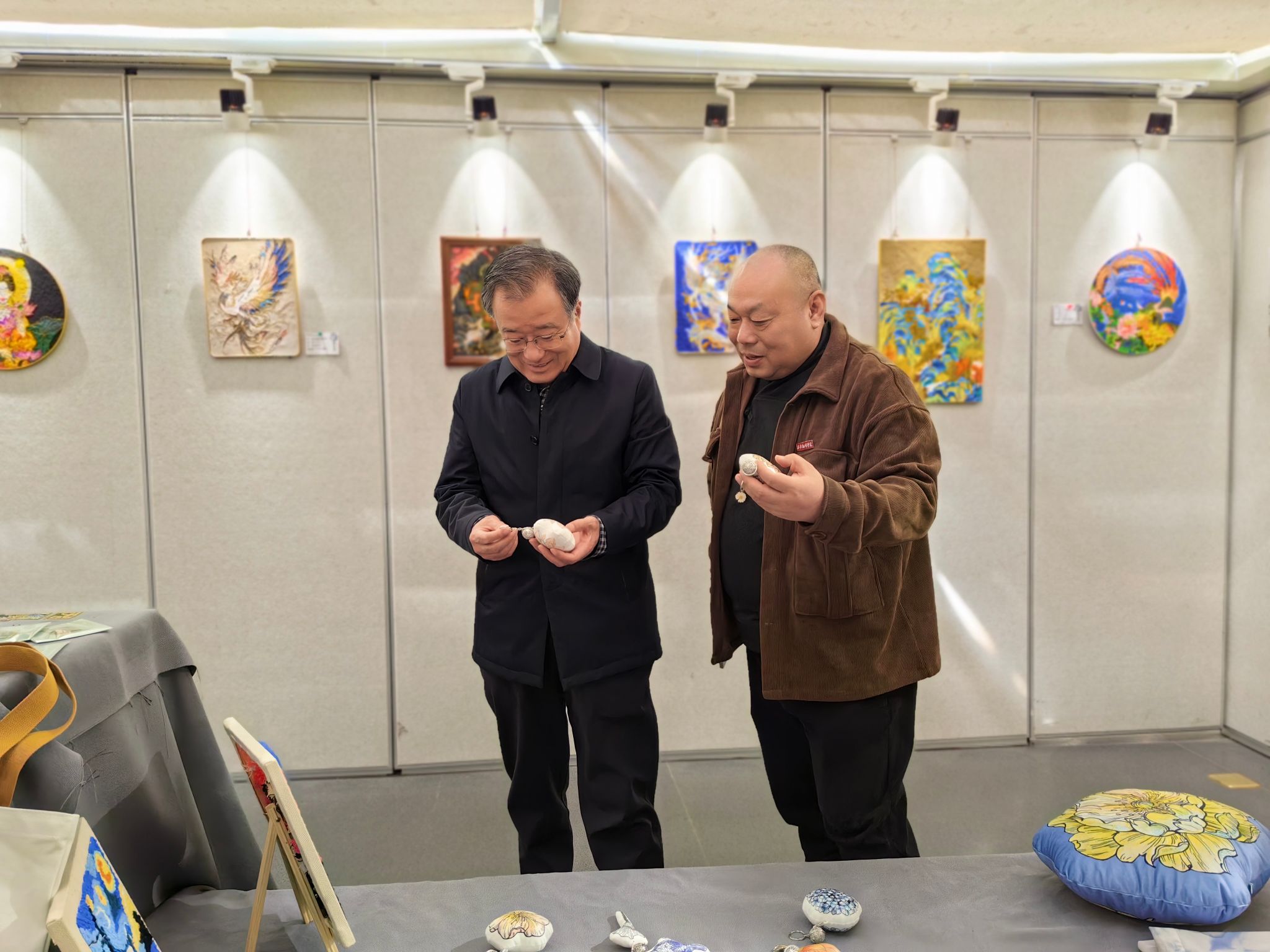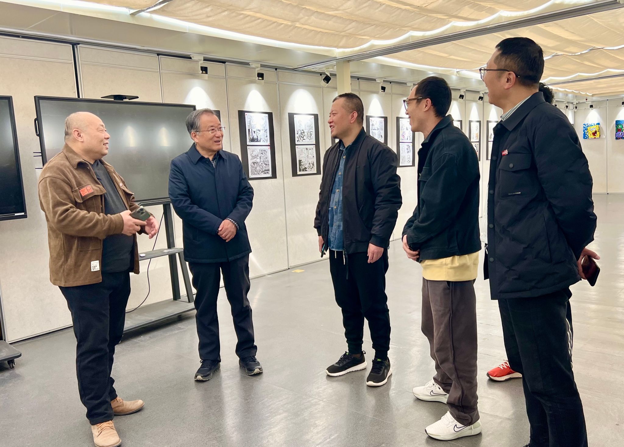 崔智林校长细致地审视了学生的作品,不时驻足以深入了解作品的绘制思路与制作工艺。并对学生的创意与才华表达了高度的赞赏。他提到这些作品展现出了丰富的艺术美感和突出的艺术表现效果,不仅达到了预期的教学目标,更凸显了艺术与设计学院学生严谨务实、积极进取、勇于探索、强于实践的精神风貌。他鼓励学院要敢于突破传统,勇于探索创新,将教师创新教学的理念融入教学实践中,以更好提升学生的个人综合素质和创新能力。