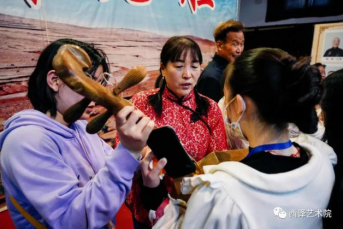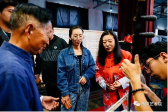 观看完铿锵有力的华州老腔后同学们和表演华州老腔的老艺术家们进行了交流学习。