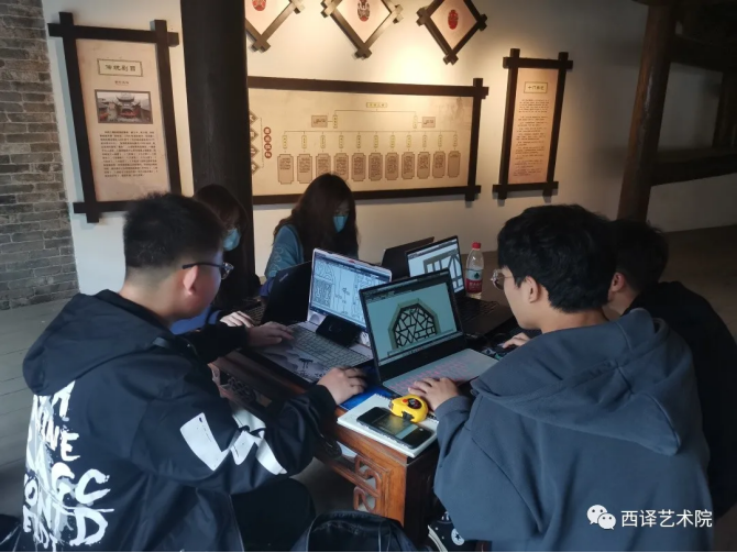 4月14日,测量组同学们对黄洲馆古建筑进行分工测量和绘画;软件组同学们进行电脑绘图任务分配。