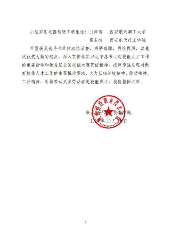 西安翻译学院在此次赛事中成绩斐然,多名学子和教职工成功入选国赛。在包装设计师学生组中,纪宇琛同学凭借出色的表现脱颖而出,荣获佳绩,展现了西安翻译学院在设计领域的教学成果和学生的专业素养。在小型家用电器制造工职工组,王博瑾和蒋硕老师展现出了卓越的技能水平,成功入选国赛名单。