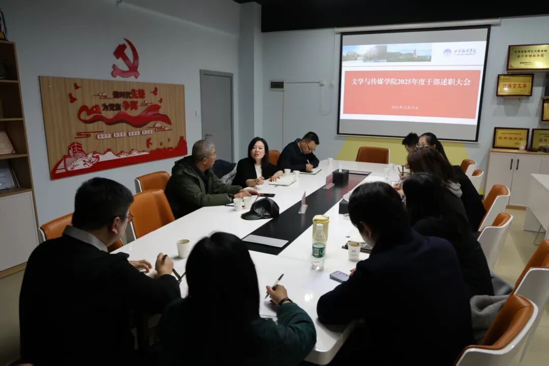 为了全面总结年度工作、科学谋划未来发展,12月23日,文学与传媒学院院长述职大会在八号楼一楼会议室顺利召开。参与此次大会的有:西安翻译学院副校长王利晓,文学与传媒学院院长兰拉成,党委书记、行政副院长李绍先,副院长张毅、刘杨,院长助理王宁,综合办副主任胡松武,汉语言文学系主任高云霞,汉语国际教育系主任赵康,戏剧影视文学系主任李昭,大学语文与写作实践教学中心负责人杨小慈。