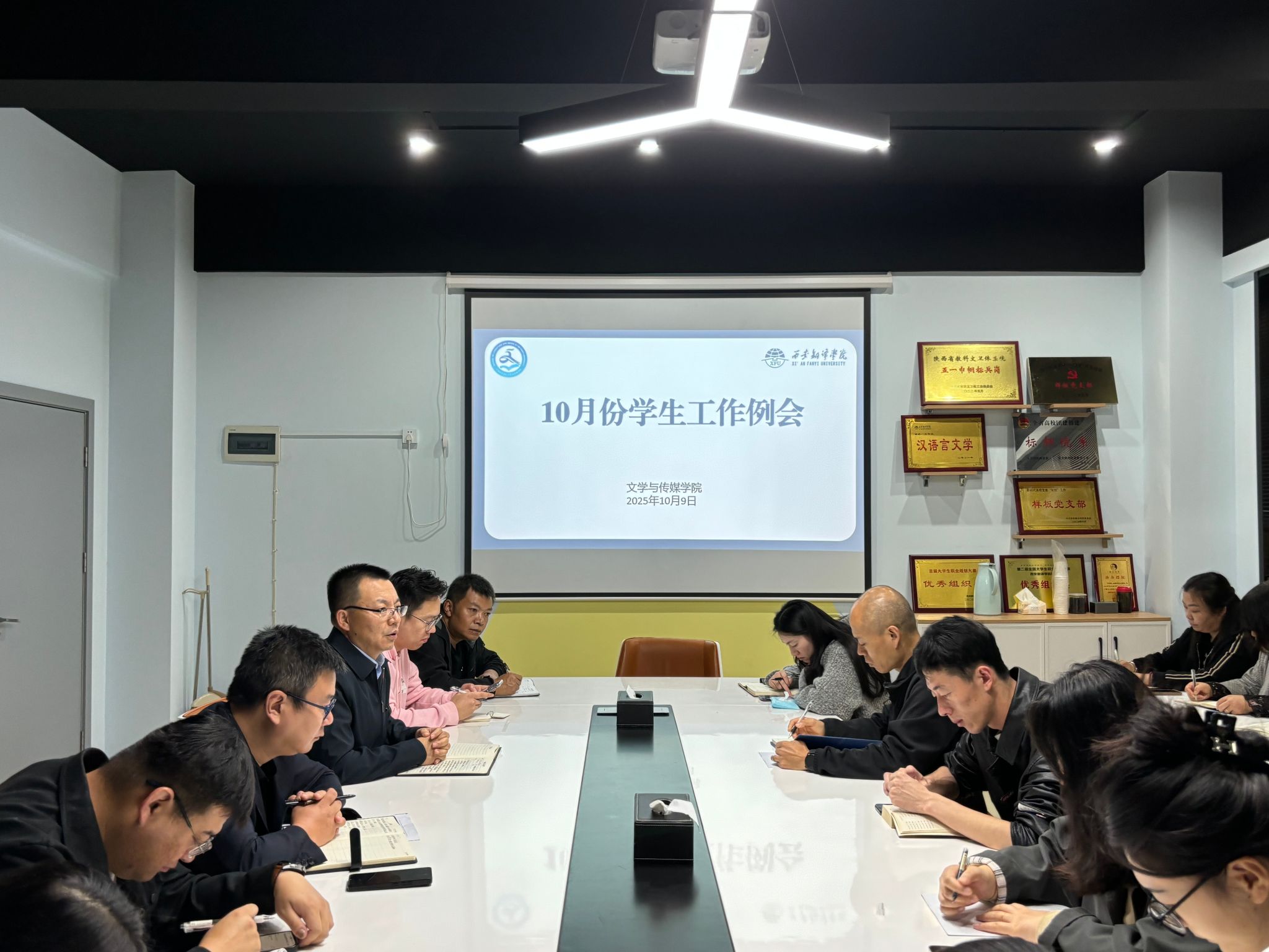 为全面落实学校学生工作部署,切实解决学院管理中的痛点难点问题,10月10日,文学与传媒学院召开十月学生工作专题会议。学院党委书记、副院长李绍先,综合办公室副主任胡松武及全体专兼职辅导员参会。会议围绕意识形态安全、学风建设、日常管理、心理健康、就业指导五大核心议题展开,通过细化整改措施、明确责任分工、强化监督落实,推动学生工作提质增效。