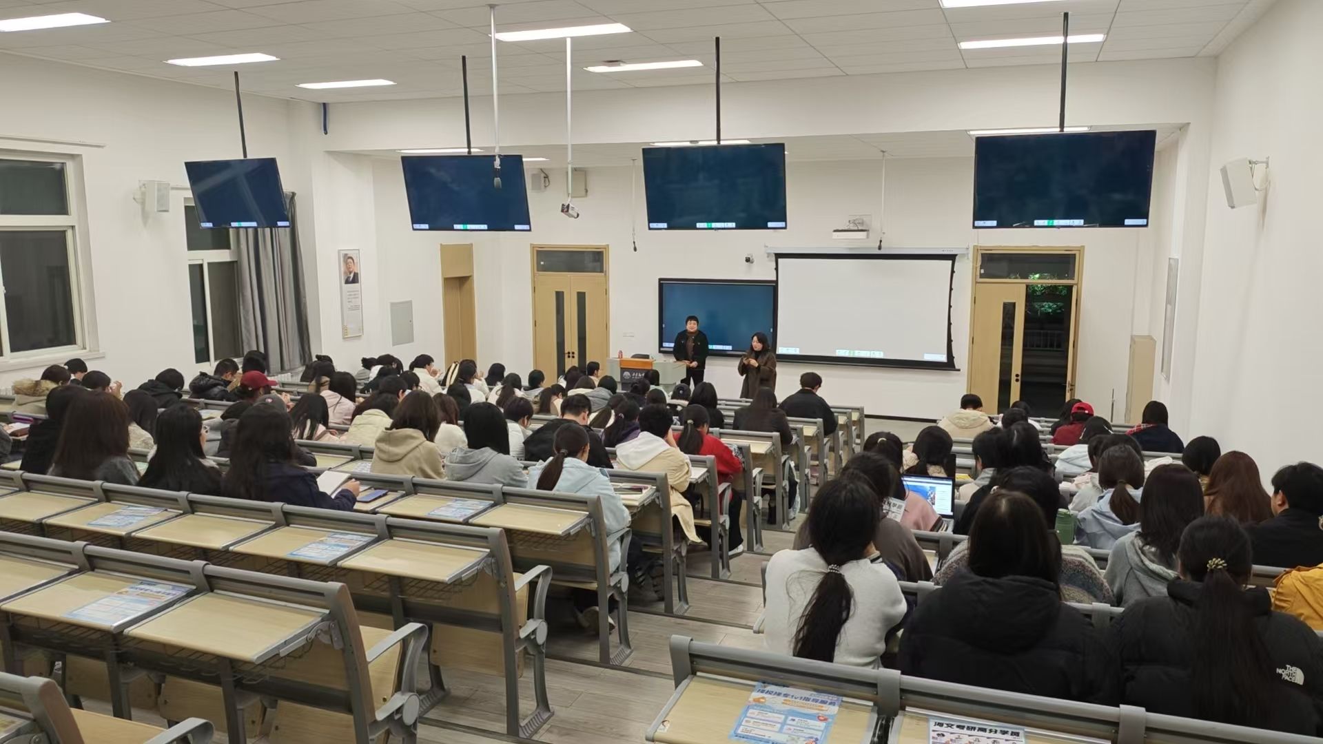 讲座期间,主讲嘉宾立足考研英语最新命题趋势与考试大纲要求,围绕题型特点、核心考点、命题规律等关键维度系统授课,结合历年真题案例,对词汇积累、语法攻坚、阅读解题技巧、写作高分策略等备考重点模块进行精准拆解与深度解析。针对不同基础学子的备考痛点,嘉宾详细分享了分阶段备考规划、高效复习方法,并现场回应学生疑问,提供个性化指导建议,助力学子扫清备考障碍。