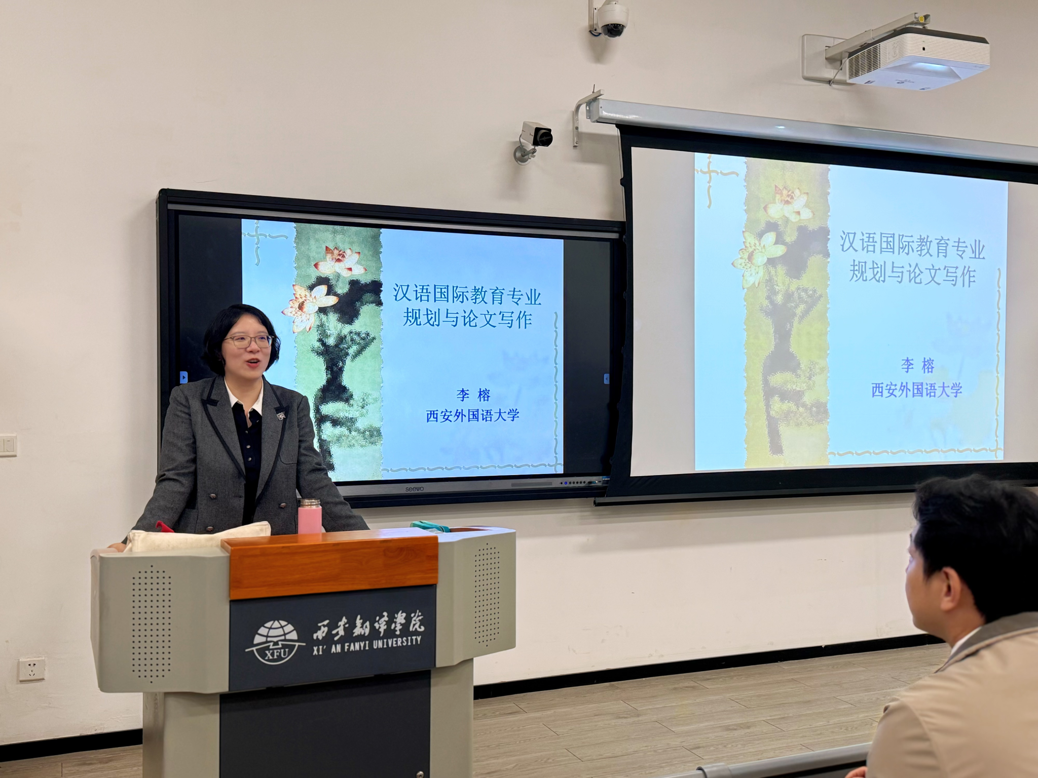 10月21日下午两点,文学与传媒学院汉语国际教育系在10T22教室成功举办一场关于“汉语国际教育专业规划与论文写作”专题讲座。本次讲座邀请西安外国语大学博士生导师、西外大汉语国际教育负责人李榕教授为主讲嘉宾,围绕四年大学规划、阅读书单、学术资料查找、论文撰写及毕业出路等话题为汉语国际教育及相关专业同学的发展提供了一系列实用指导。讲座由汉语国际教育系赵康主任主持,汉语国际教育专业的部分师生代表参加。