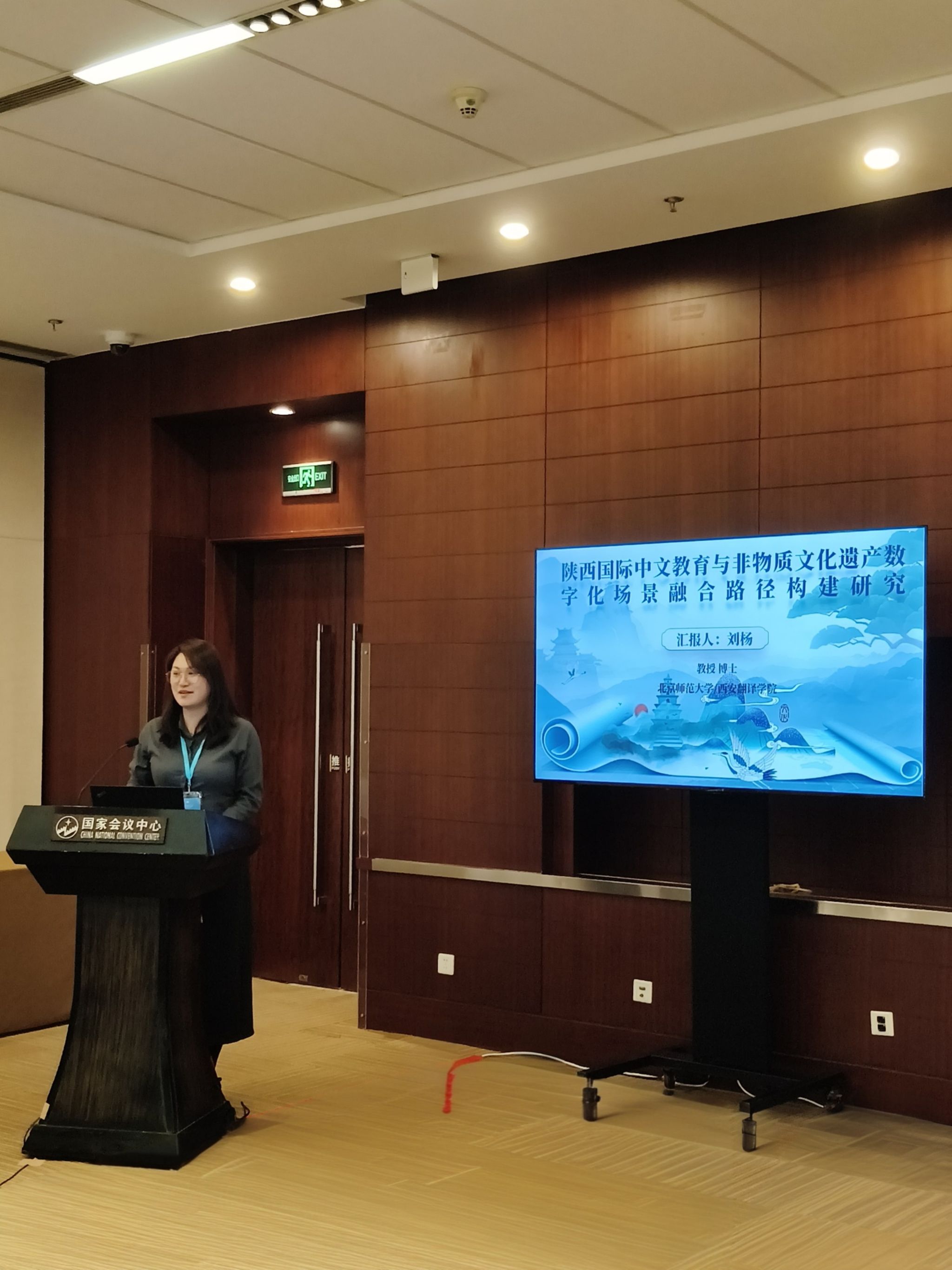 刘杨教授作为发言嘉宾聚焦陕西民俗资源,做了“陕西国际中文教育与民俗文化融合发展研究”的主旨发言。刘杨教授提出“文化载体+语言教学”双轨融合模式:一方面将民俗文化嵌入中文课堂,通过“动手实践+语言表达”强化学习沉浸感;另一方面借助数智技术突破地域限制,让海外学习者远程感受陕西文化魅力。该研究还建议建立“高校+民俗文化推广者+海外孔子学院”协作机制,推动陕西非遗资源转化为国际中文教育特色课程,为区域文化对外传播与中文教学创新提供了可借鉴的实践路径。为全球中文教育的现代化转型提供了新思路与实践参考。