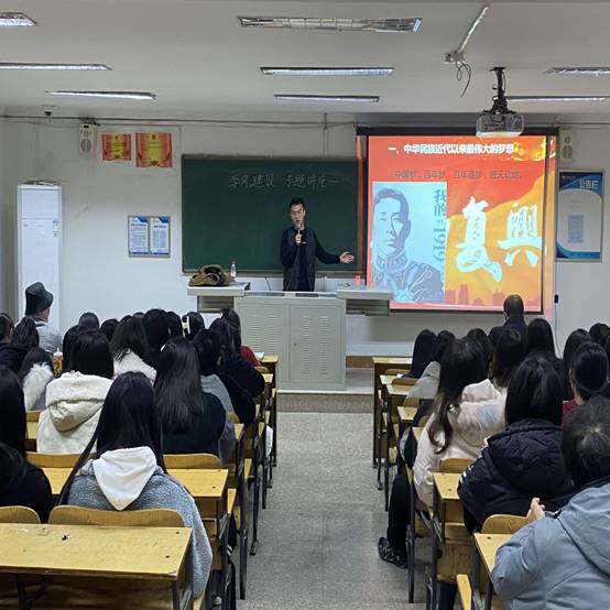 周炜杰通过四部分开展本次讲座。在第一部分中华民族近代以来为实现中国梦所经历的三个阶段中,他通过习近平总书记在参观《复兴之路》展览时引用的三句诗,带我们回顾过去、观看现在、展望未来。在第二部分中国梦的科学内涵中,他通过国家富强、民族振兴、人民幸福三方面将国家利益、民族利益和每个人的具体利益紧紧地联系在一起,同时提出,我们每个人都是中国梦的参与者和创造者。在第三部分中国梦的特点中,通过中国梦是人民的梦、也是国家的梦以及中国梦与世界各国人民的美好梦想相通这三点,总结出我们每个人的奋斗都离不开国家,国家梦的实现也离不开我们每个人,中国梦是和平、发展、合作、共赢的梦这一特点。接着在奋力实现中国梦这一部分,他提出只有实干才能梦想成真,当代青年需要有理想有担当,这样国家才能有前途、民族才能有希望。当今的大学生应当脚踏实地的学习,掌握党的基本理论,坚定马克思主义的信仰,始终坚定中国特色社会主义“四个自信”,努力成为中国特色社会主义事业的接班人,自觉为实现中华民族伟大复兴的中国梦而奋斗。