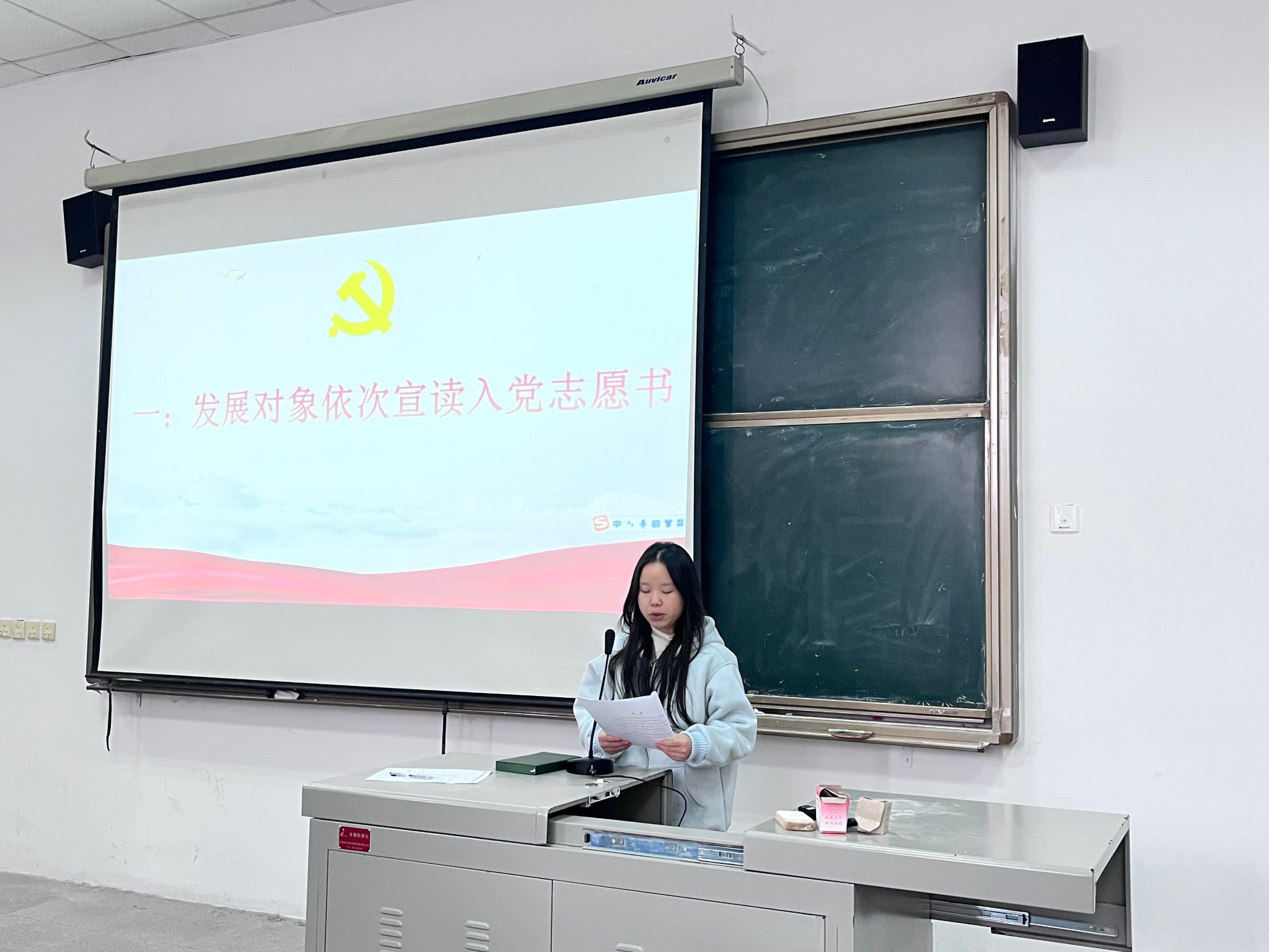 紧接着,支委会成员宣读政审决议。决议详细汇报了对各发展对象的政治审查情况,明确其政治历史清白、思想作风正派,符合预备党员接收的政治条件,为大会后续表决提供了重要依据。