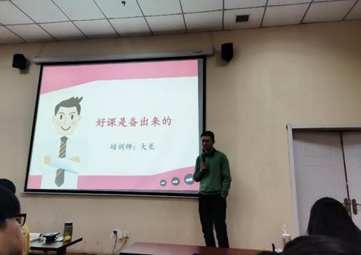 随后课堂进行了互动,301班学生询问老师:“她在写教案的过程中遇到了困难,想知道怎样最快的知道学生学习状态和水平”?大龙老师回答到:“如何做好教学大纲了解学生,需要老师主动出击询问,我们要充分地利用课堂周围地一切事物来了解学生,选择重难点进行过滤筛选,选择最佳地教学方案再详细写出完整教案”。