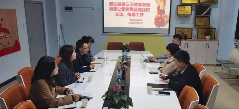 为深入贯彻落实《关于在院校实施“学历证书+若干职业技能等级证书”制度试点方案》,11月10日上午10时,西安维德云天教育发展有限公司总经理李璐、副总经理王智耀,公司专员张国泰一行三人莅临文学与传媒学院交流指导工作。交流座谈会在8号楼会议室举行,文学与传媒学院行政副院长李绍先、教务处实践教学科科长赵鑫、文学与传媒学院综合办主任王宁、空乘教学部主任林英、空乘专业学科带头人赵小妮参加会议。