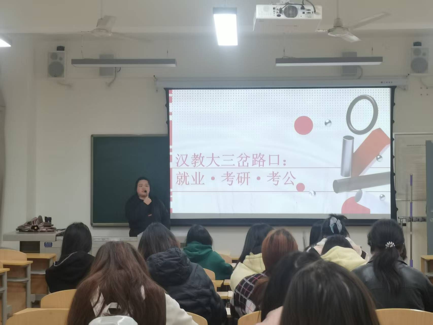 2025年10月20日,2023级汉语国际教育专业升学就业指导会圆满落幕。本次指导会聚焦专业特色与学子需求,通过政策解读、路径拆解、案例分析等形式,为处于职业抉择关键期的学生提供全方位指引,有效打破“专业就业窄”的认知误区。