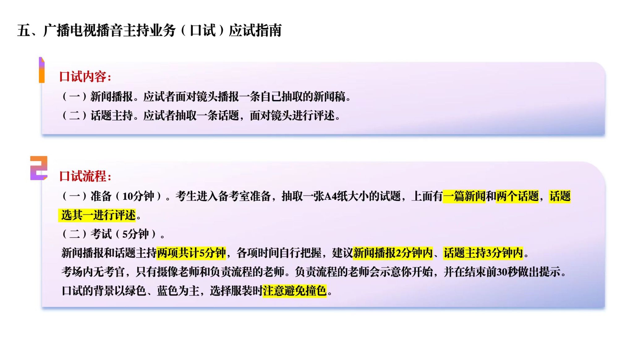 最后,老师们还就同学们提出的备考资料选择、复习时间安排等问题进行了耐心细致的解答。同学们纷纷表示,通过此次指导,对播音员主持人资格考试有了更清晰的认识,也明确了今后的努力方向,将积极备考,争取在2026年的考试中取得优异成绩。