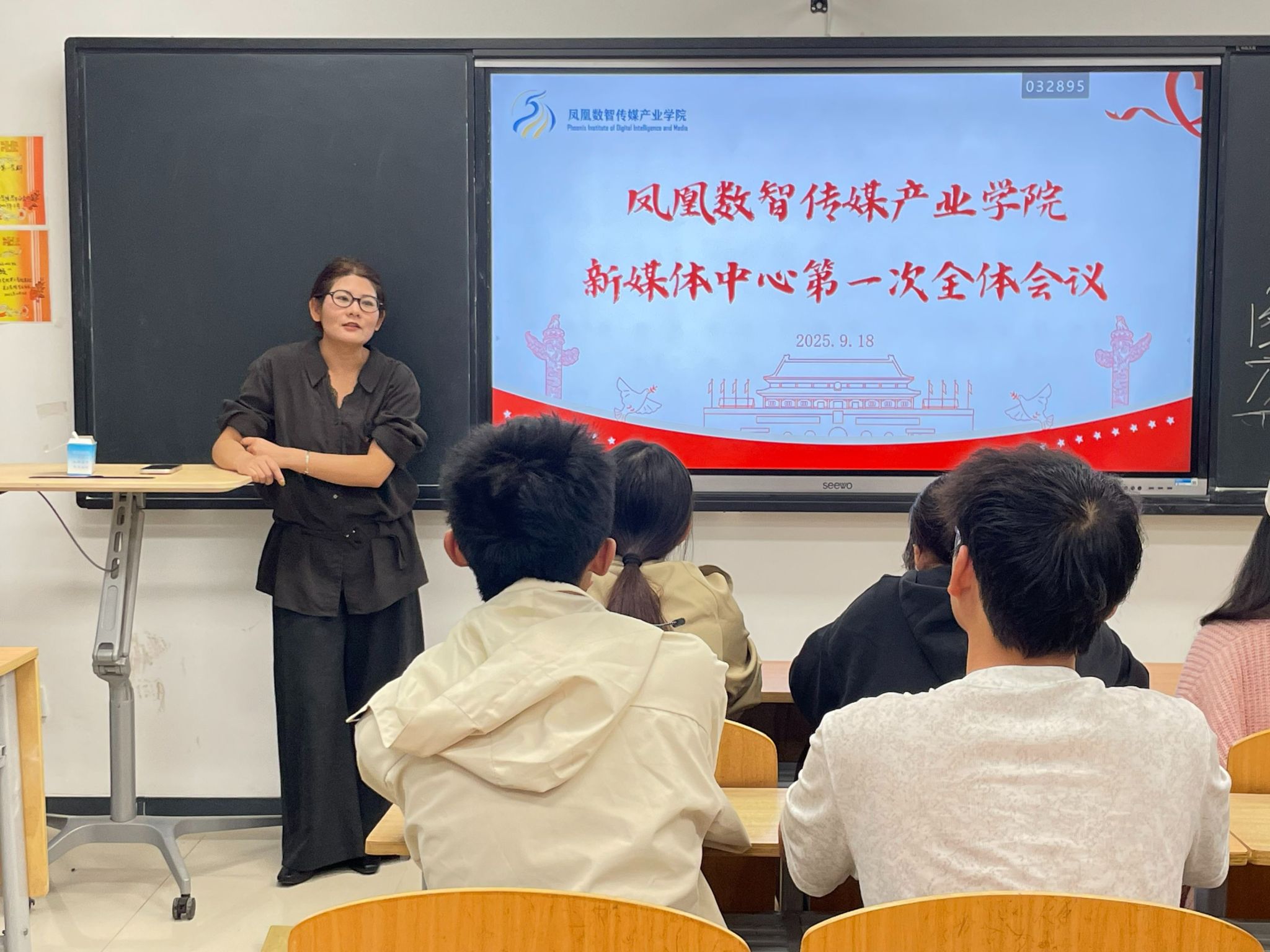 为明确新媒体中心职能定位、统筹新学期宣传工作布局、凝聚团队协作力量,9月18日,凤凰数智传媒产业学院新媒体中心第一次全体大会在西区1号楼1430教室顺利召开。新媒体中心负责老师勾星主持会议,新媒体中心全体成员参会。