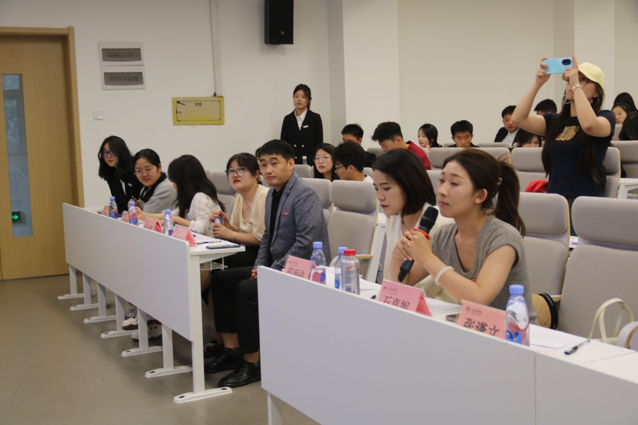 学院采用“学院融合+”评审方式,学院4位专家以及3位创新创业学院专家组成评审团,经过两轮采用 “双盲评审+多维赋权”机制的线上专家评分(创新性占40%、社会价值占30%、可落地性占30%),选出43个项目进入校赛选拔,通过又一次专家严格评审,共有10个项目脱颖而出,成功晋级院赛路演环节。在路演现场,邀请到创新创业学院石嘉妮、薛雨佳老师担任评委,路演现场特别设置“5分钟项目展示+3分钟答辩”环节,各项目团队以精美的PPT展示和生动的现场讲解,向评委和观众们展示了他们的创新成果和创业梦想。面对评委的提问,团队成员们沉着冷静、对答如流,赢得了阵阵掌声和赞誉。最终,经过严格评选,获奖选手脱颖而出,他们的优秀表现不仅为学院争得了荣誉,更为自己未来的创新创业之路奠定了坚实的基础。
