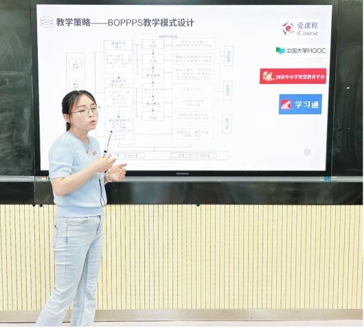教师教育课程教学设计赛道,闫宁宁老师讲授的《课程与教学论》采用“问题导向”和“任务驱动”教学模式,引导学生进行项目探究式学习,赢得现场阵阵掌声。