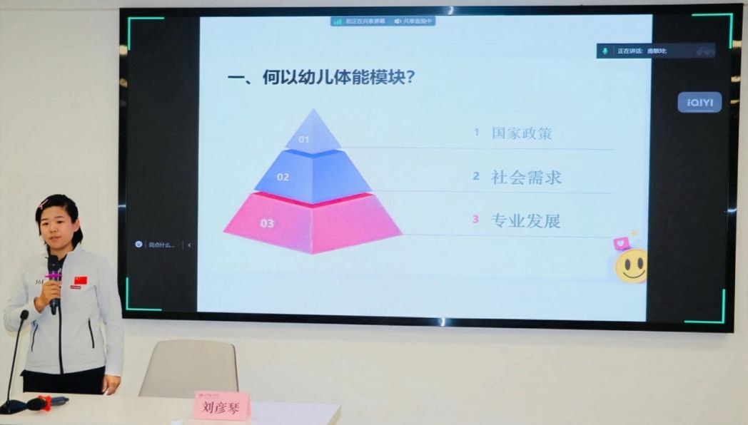 刘彦琴老师结合国家对幼儿体育教育的扶持政策,深入剖析该模块在学前教育中的关键价值。刘老师详细解读了幼儿球类、跳绳、趣味田径三大内容并特别强调,投身该领域,热爱是不可或缺的源动力。未来,同学们需凭借专业的体育教育知识,为幼儿良好身体素质的培养及运动技能的提升贡献力量。