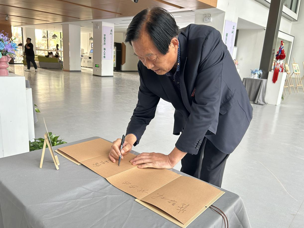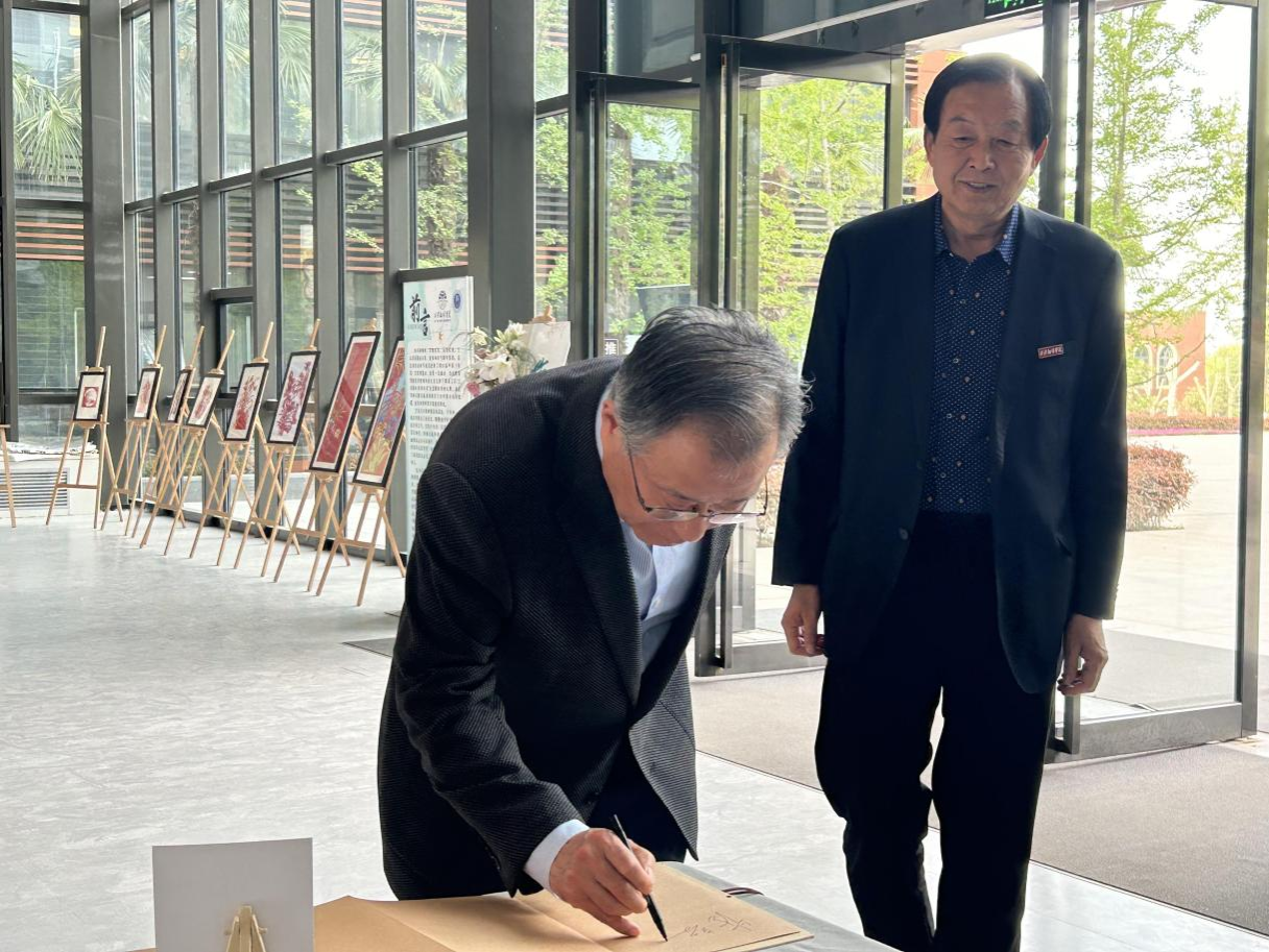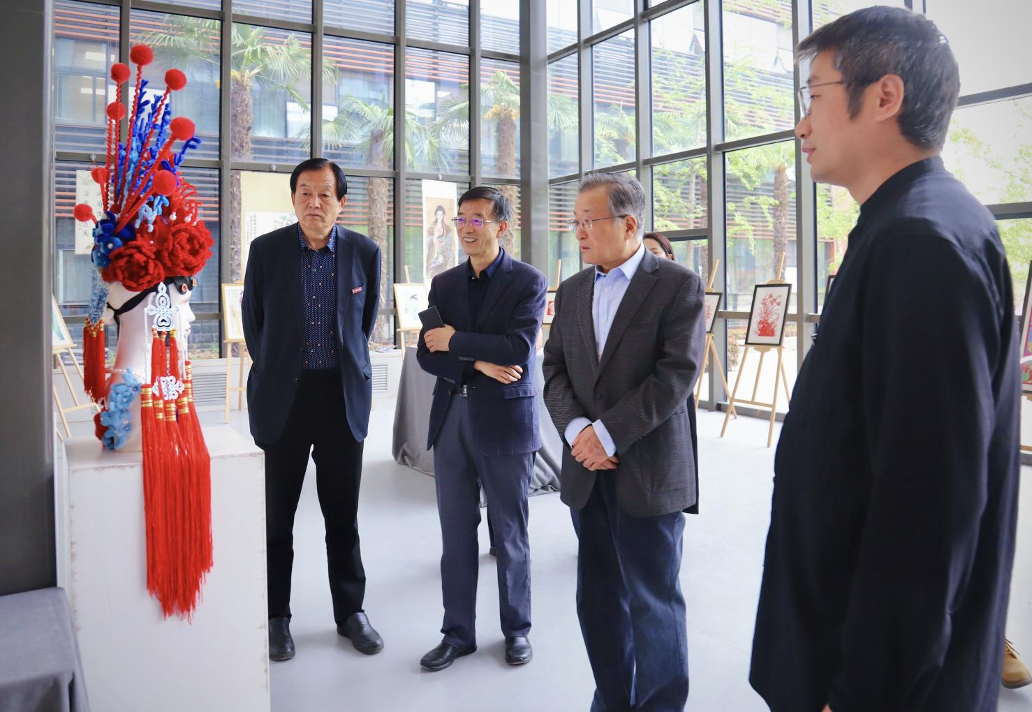 西安翻译学院校长崔智林,副校长武忠远,教育学院院长何兆华,教育学院党委书记、行政副院长王小龙,党政办公室副主任张乐,教育学院美育教学中心主任张鹤以及美术教研室主任姚涛一同参观了此次展览。在何兆华院长的带领下,美术教研室主任姚涛为崔校长一行详细讲解了展出作品的相关情况。崔校长对学生们的兰花主题作品给予了充分肯定,他希望教育学院能够坚守美育初心,持续提升师生的传统文化修养,并以此为契机,鼓励全校师生积极参与,充分展示西译学子的艺术才华。武校长也表示,师范生能在艺术作品上达到这样的精巧程度实属不易,同时他对美育中心教师的辛勤付出给予了认可。随后,何兆华院长与两位校长就教育学院美育教学的相关工作进行了深入交流。