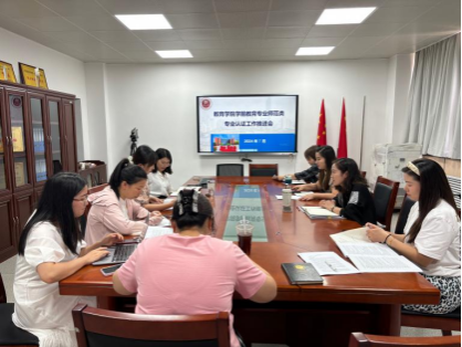 2024年7月4日教育学院学前教育专业顺利通过2024年陕西省师范类专业认证的受理申请,为进一步扎实推进后续认证工作,教育学院于7月5日在八号楼会议室召开学前教育师范专业认证工作推进会。教育学院副院长庞小佳、副院长辛维英,学前教育系主任黄玉芳、系副主任杜赟,美育教学中心主任张鹤,教研室主任杨亚博、李盼盼、邓超华和教师代表参会。