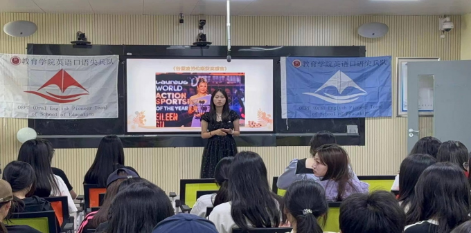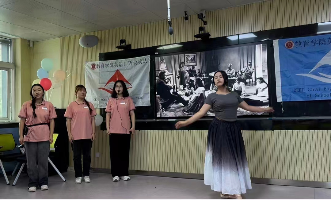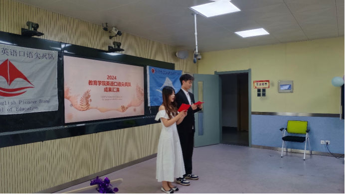 2024年6月12日下午14:30,教育学院英语口语尖兵队在8314M举行了成果汇演。本次活动在全体成员的共同努力和杨宁老师的精心指导下,取得了圆满成功。