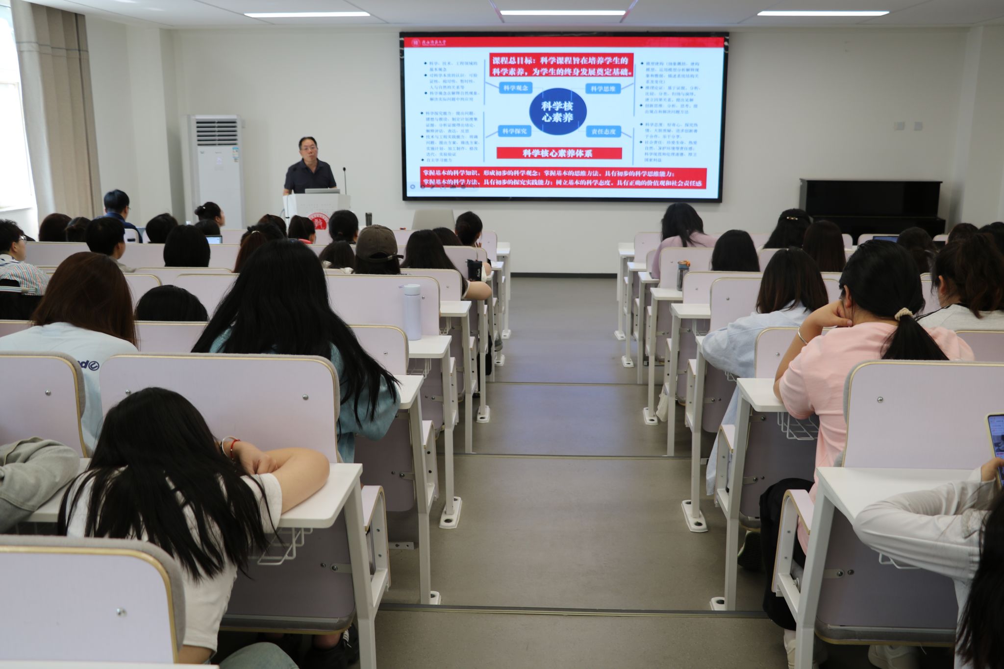 张教授提到习近平总书记强调的“做好科学教育的加法,培养具备科学家潜质、愿意献身科学研究事业的青少年群体”,由此引出科技人才的培养在教育领域的重要性。随后,他谈到了自己从课程与教学论的教学转向科学教育的契机,着重讲述了2012年他所在单位与美国西北大学的合作项目的经历,这使他深刻的感受到了科学教育的价值。