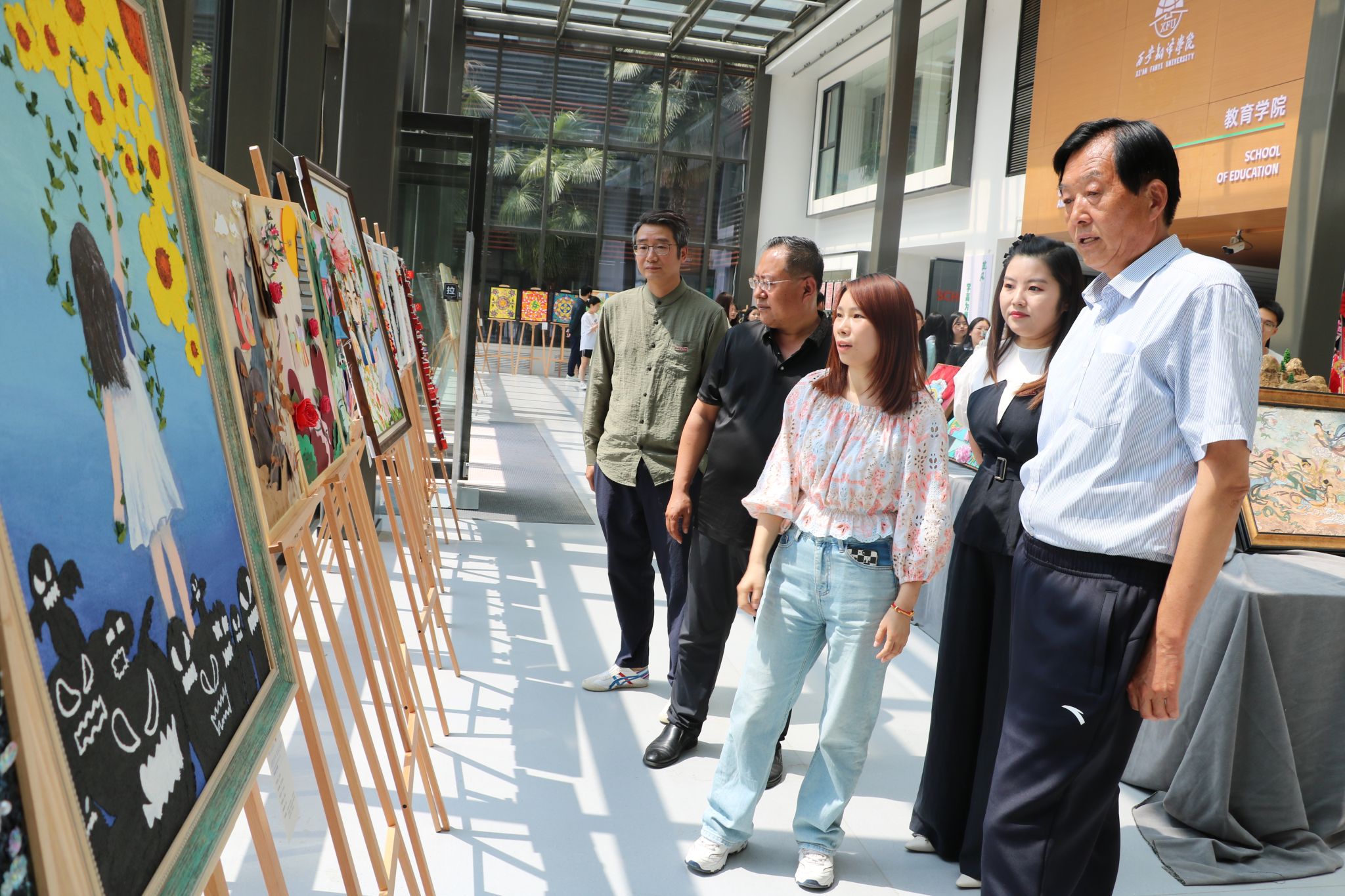 5月15日,由教育学院主办,教育学院美育教学中心承办,教育学院博鸽艺术团与及团总支协办的“润物无声 育美之英才”西安翻译学院教育学院2024届毕业设计作品展正式开幕,这是一场别开生面的开幕式。参加开幕式的有:教育学院院长何兆华,教育学院党委书记王小龙,教育学院副院长辛维英,以及教育学院的专职教师和辅导员们。