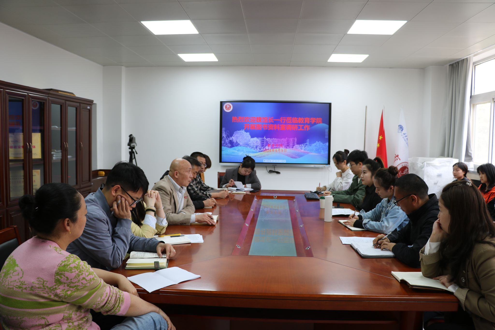 为全面了解教育学院图书资料室建设工作和师生对文献资源的借阅需求,进一步提高图书馆服务质量,2024年4月9日下午,图书馆馆长魏哲铭、副馆长侯永兴及各部室主任一行到教育学院开展图书资料室调研工作。教育学院副院长庞小佳、副院长辛维英、综合办副主任刘正安及各系师生代表参加了座谈会。