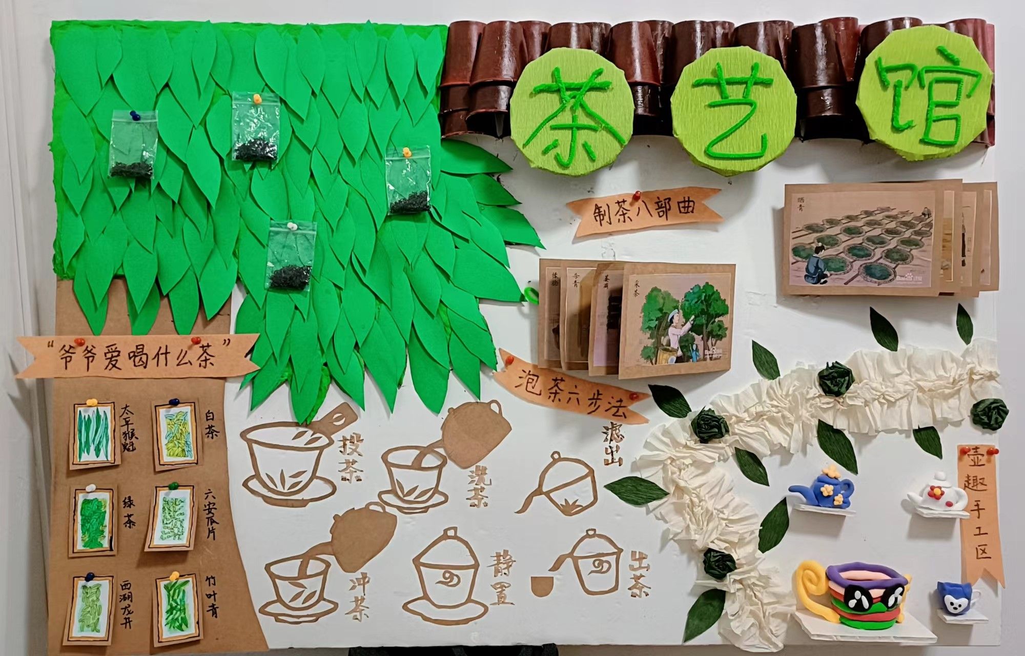 本次“国粹芬芳·千秋传承”中华民族传统文化主题环境创设活动旨在展现幼儿园中华民族传统文化环境创设特色,通过幼儿园主题墙进行文化滋养,实现幼儿园环境的育人价值,潜移默化中对学前儿童进行中华民族传统文化教育。在教育学院杨亚博老师的指导下,收集作品24件,展出10件,此次展出作品以民族传统文化中的茶、皮影、建筑、汉字、青花瓷、扎染、武术等为内容,基于学前儿童直接经验和实际生活认识,结合学前儿童身心发展特点,打破五大领域学科界限,设计了彰显中华民族传统文化的幼儿园主题墙。这些充满趣味性、可操作性、综合性与育人性的幼儿园主题环境创设,充分体现了传统文化教育融于生活、游戏中的设计理念,为学前儿童创设了沉浸式的中华民族传统文化学习环境,有助于学前儿童传统文化的认识发展。