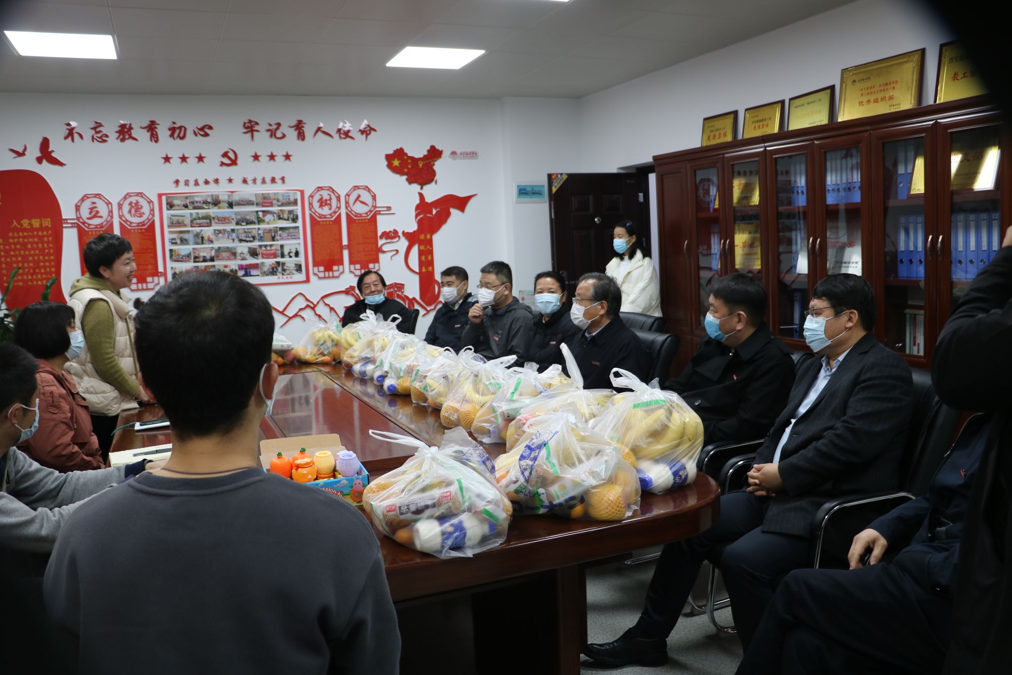 崔智林代表丁晶理事长对第一时间响应号召,坚守校园疫情防控第一线的辅导员们表示感谢,高度赞扬他们24小时驻校值守,舍“小家”顾“大家”的奉献精神。他表示,大家闻令而动、勇挑重担,识大体、顾大局,为守护校园安全和学生健康构筑起坚强防线,用实际行动打造了一堂战“疫”中的“思政大课”,为学校疫情防控大局做出了积极贡献,充分展现了以学生为本、以校为家的情怀和担当。当前西安市疫情已有好转,希望大家继续保持严实的工作作风,切实把各项防控措施落实到位,守护好师生生命安全和身心健康。
