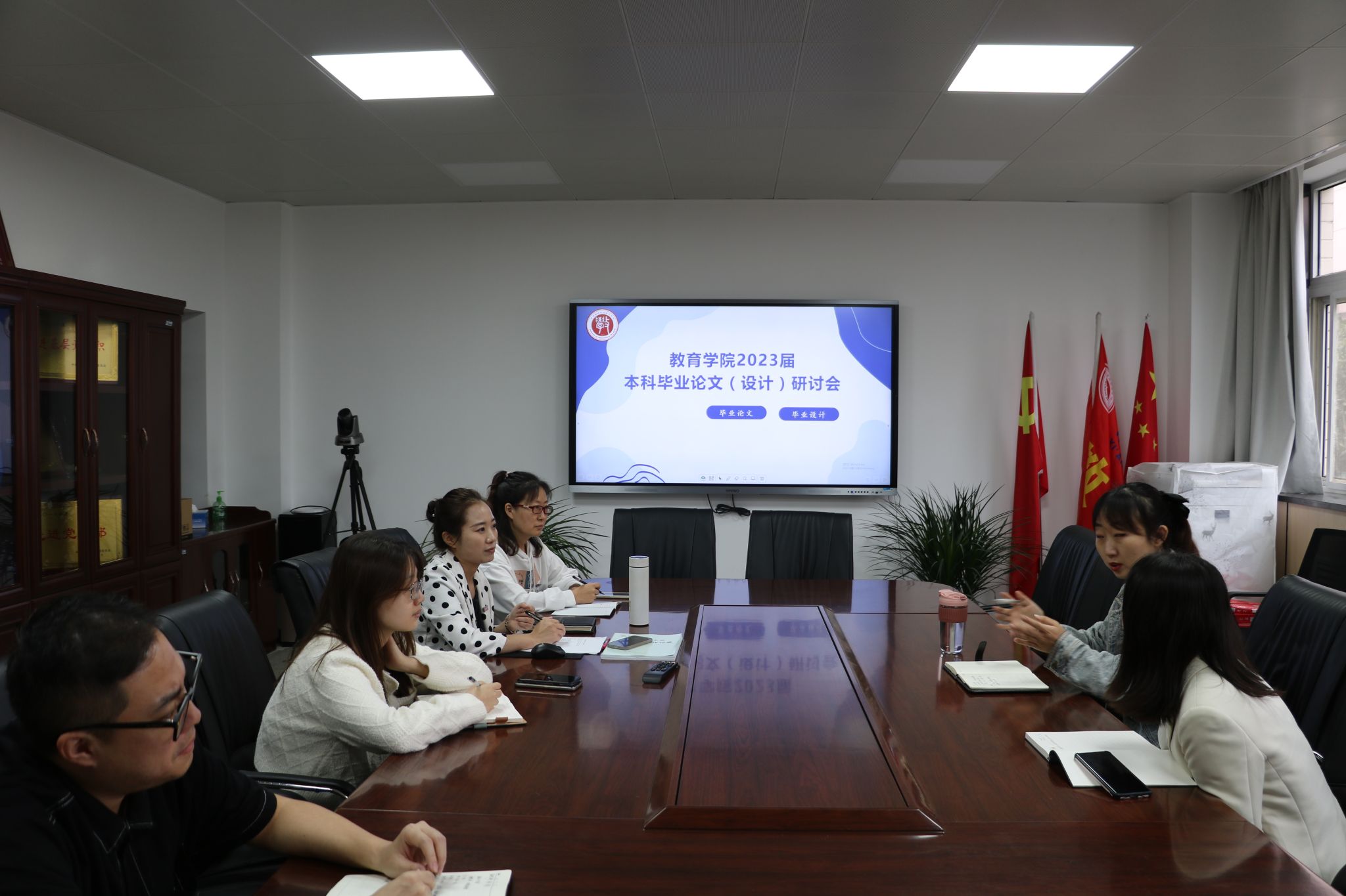 为进一步加强教育学院本科毕业论文规范管理,确保今后本科毕业生论文工作的顺利开展, 2022年9月20日下午在八号楼二楼会议室,召开了教育学院本科毕业论文(附件)格式规范专题研讨会,会议由教育学院教学副院长庞小佳主持,学前教育系主任黄玉芳、系副主任杜赟,小学教育系主任阎涛、系副主任姜欢、王越和教务科论文负责老师苏勉萍参加了本次研讨。