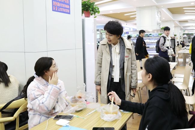 丁晶与学生亲切交谈