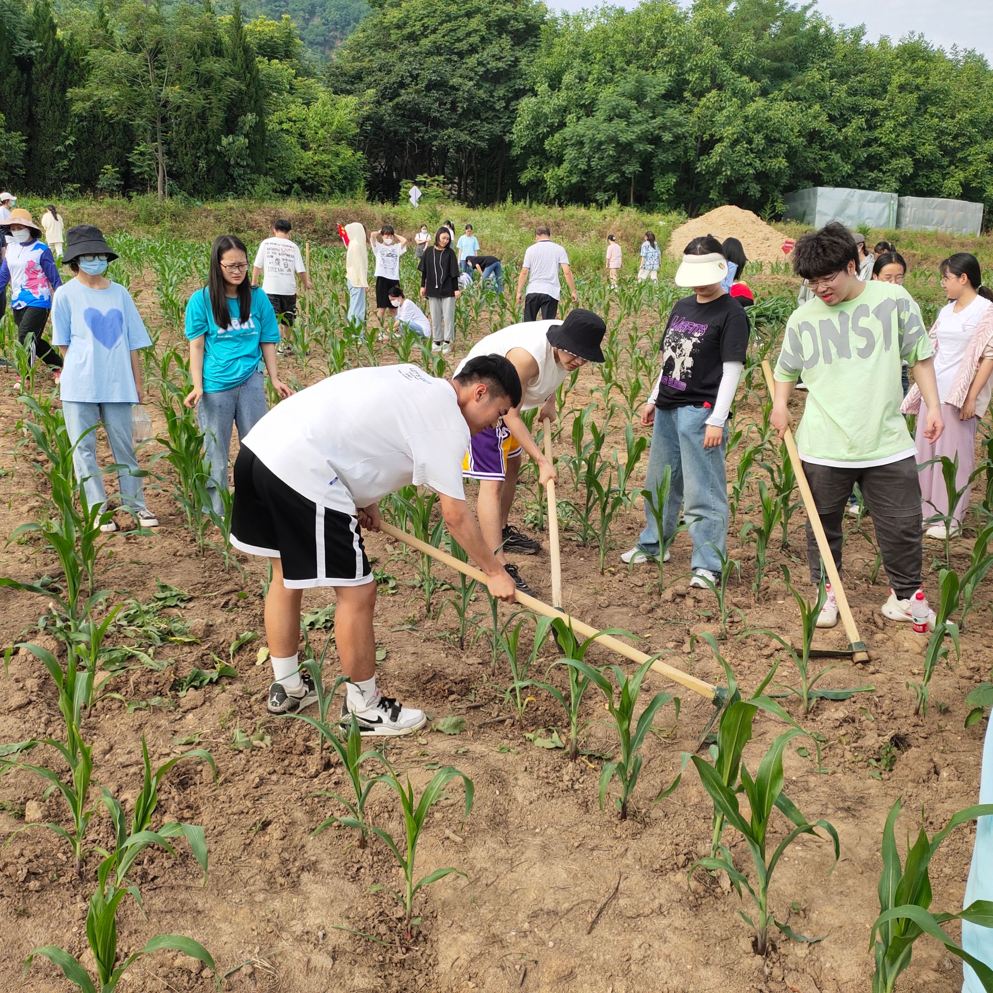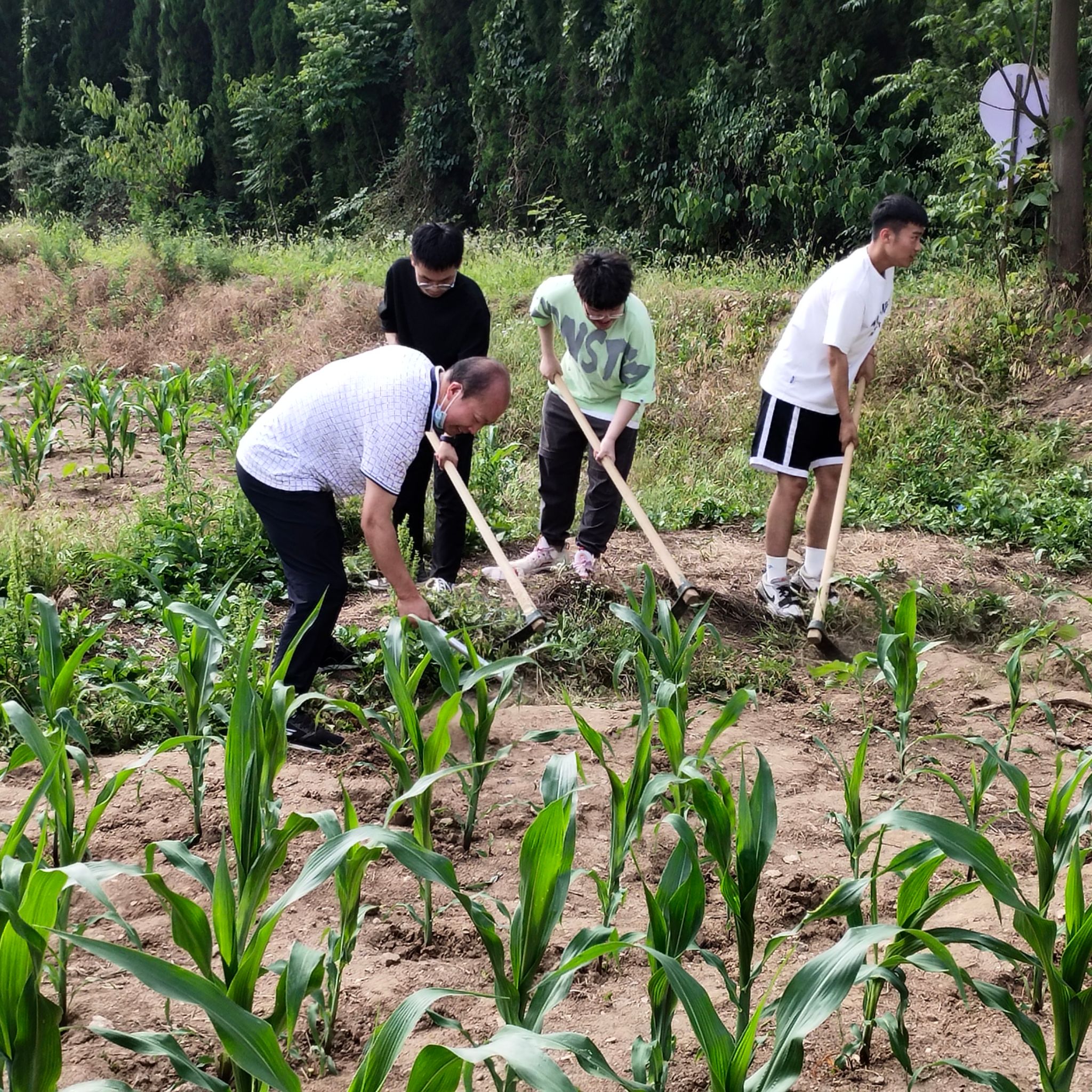 王主任和于书记身体力行,积极参与到劳动实践活动中。随着时间的推移,大家顶着烈日埋头苦干,大滴汗珠从脸上躺下,依旧抵挡不住师生们的劳动热情,同学们发扬着不怕脏,不怕苦,不怕累的劳动精神。大约1个多小时后,教育学院种植玉米的劳动基地被大家清理地干干净净。甚至有的同学打趣说等到9月开学来一定要吃自己看着长大的玉米!