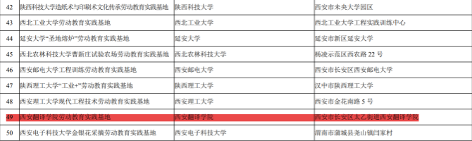 近日,陕西省教育厅命名首批“陕西省大中小学劳动教育实践基地”,西安翻译学院劳动教育实践基地成功入选。本次评选面向由政府或社会力量举办的劳动教育实践基地,包括综合实践基地、研学基地、青少年校外活动场所、职业院校和普通高校实习实践场所等,采取基地自评、市级初评、省级评审和认定公布的流程,共获评50个劳动教育实践基地,其中本科院校获评9个。