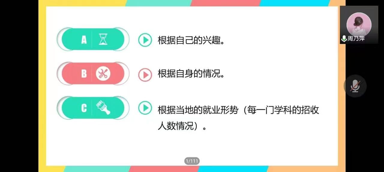 苟小茹老师主要从英语模块方向学习的目的、课程开设内容及就业去向进行了详细说明,她指出当前英语教学是小学教学的重点内容之一,这就要求小学教师既要掌握小学英语专业的教学方法,同时也要具备出色的英语技能,能够较熟练地组织富有趣味性的英语课堂。