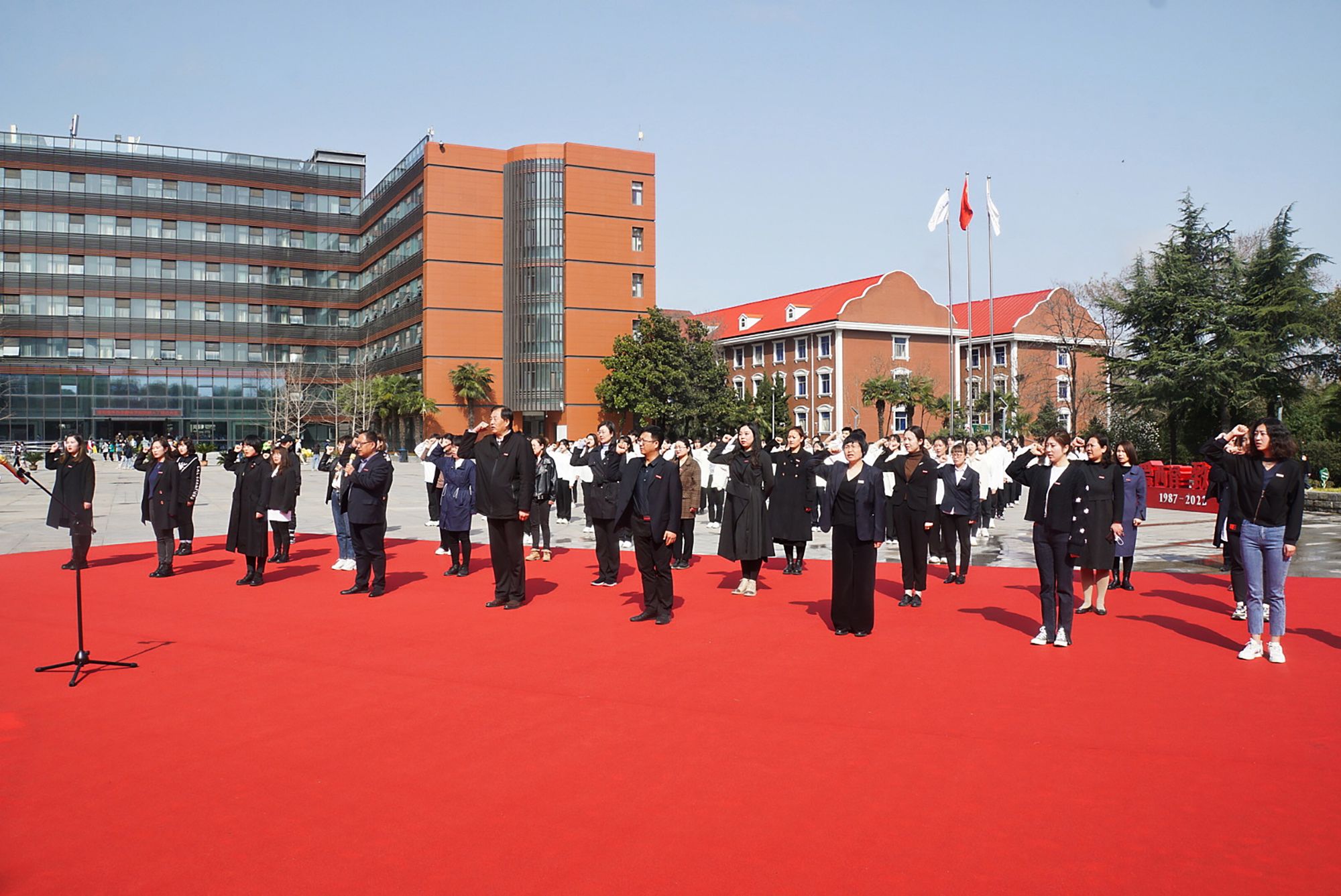 本次纪念活动由教育学院党政领导班子精心策划,院长办公会上充分商讨,紧密结合了学院专业特色,在教育学院师生共同参与下,以快闪和宣誓仪式两种形式体现,历经两周的筹备最终在八号楼广场顺利举行。