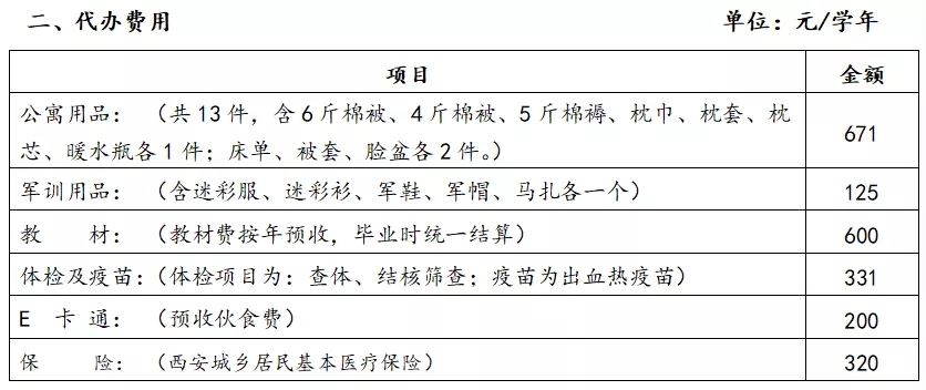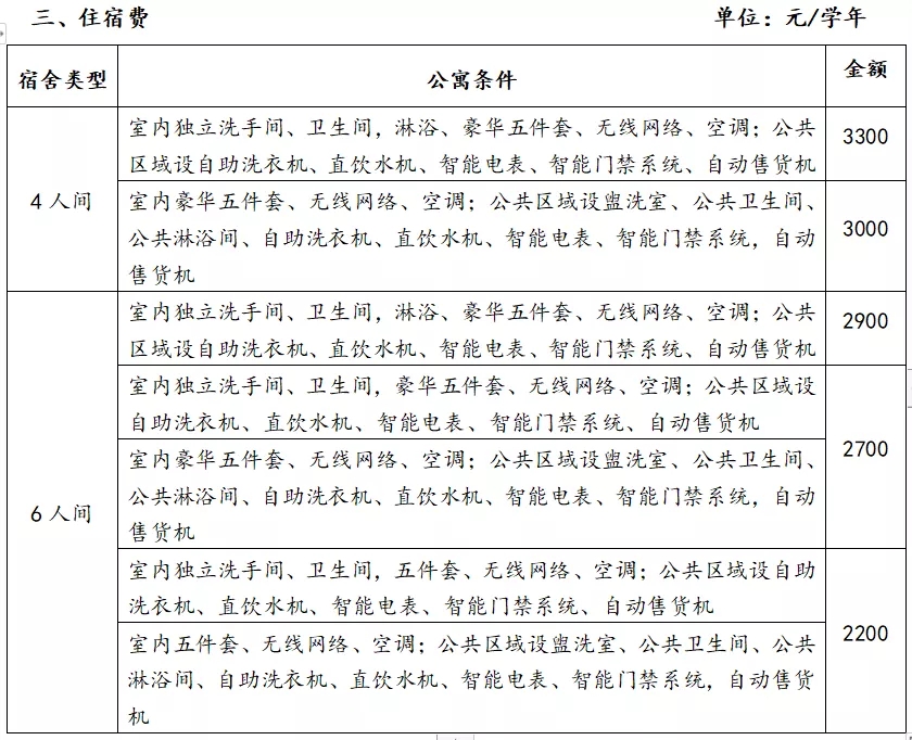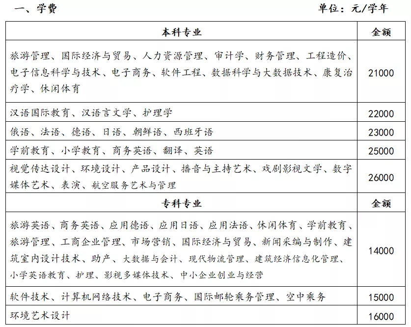 2021级新生 · 收费标准