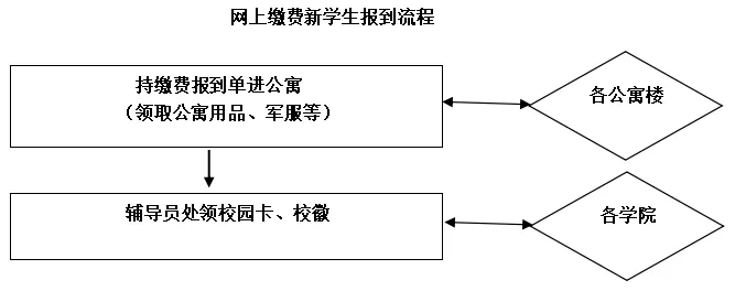 1.已经办理网上缴费学生凭网上缴费报到单进公寓办理入住手续后,到辅导员处领取校园卡和校徽。
