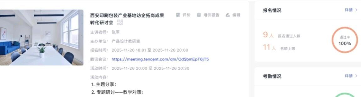 为深化产教融合,推动教学改革与产业需求紧密对接,2025年11月26日晚,产品设计专业教研室通过线上会议形式,成功召开了“西安印刷包装产业基地访企拓岗成果转化研讨会”。本次会议由教研室主任高俊晓主持,全体专业教师齐聚云端,共同探讨如何将访企拓岗的成果有效转化为教学实践的动力。