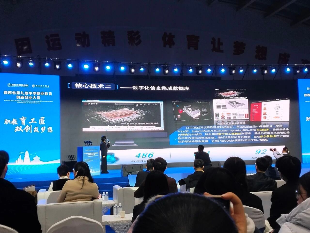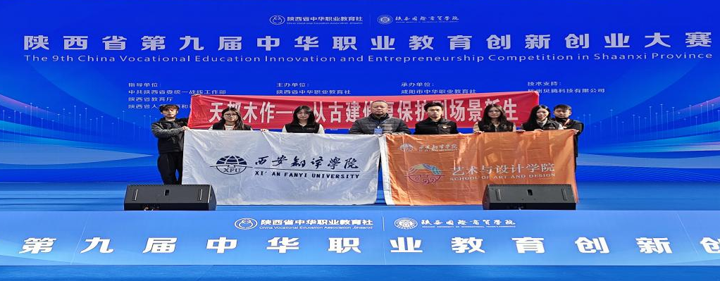 西安翻译学院艺术与设计学院在比赛现场表现十分出色,由闫鹏飞、吴迪老师带队指导,吕帅、朱子轩等七名同学组成的“天都木作”团队,凭借“天都木作——数字化赋能中国古村落建筑群”项目斩获主体赛本科组一等奖,并作为代表在闭幕式进行模范路演展示。李江涛、杨敏老师带队指导,杨云晰、杨祯等同学组成的“根系计划”团队,凭借“根系计划——县域农文旅融合的产业升级范本”项目斩获主体赛本科组二等奖,闫鹏飞、吴迪、李江涛、杨敏老师同步获评“优秀指导教师”。