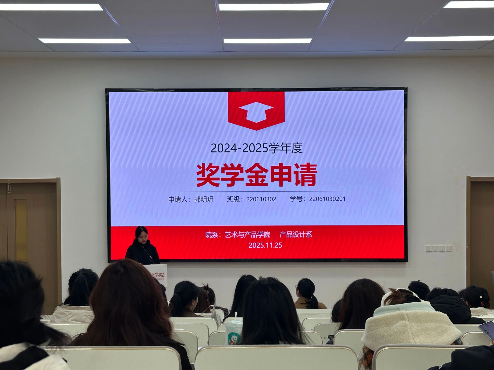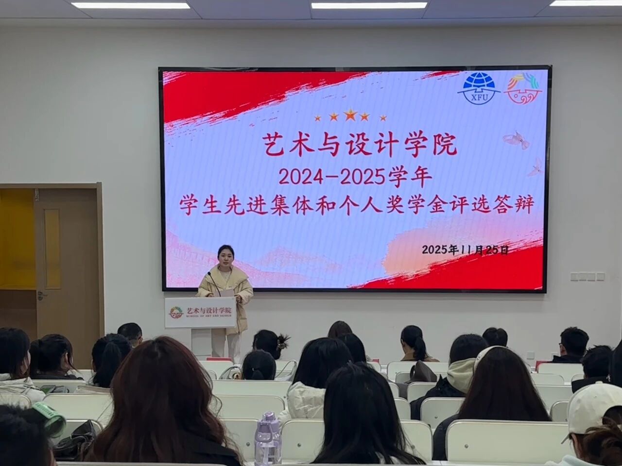 为深入贯彻立德树人教育理念,规范推进奖学金评选工作,充分发挥优秀学子的榜样引领作用,助力学院学风建设提质增效,艺术与设计学院于2025年11月25日14:00在5117t召开2024-2025学年学生先进集体及个人奖学金评选答辩会。本次会议由马荣老师主持,学院党委书记、行政副院长徐中及全体辅导员组成评审小组,全程严格遵循公平、公正、公开原则开展评审工作。