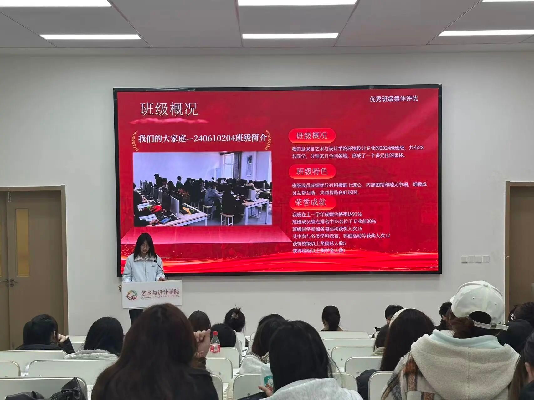 先进班集体评选环节紧随其后。各候选班级代表围绕班风建设、学风营造、竞赛成果、文体活动及志愿服务等方面展开汇报,通过详实数据与鲜活案例,展现了班级团结奋进、勤学善思的良好风貌。各班在集体建设中凝聚的向心力与创新实践,为全院班级管理提供了有益借鉴,赢得评委与现场师生的认可。