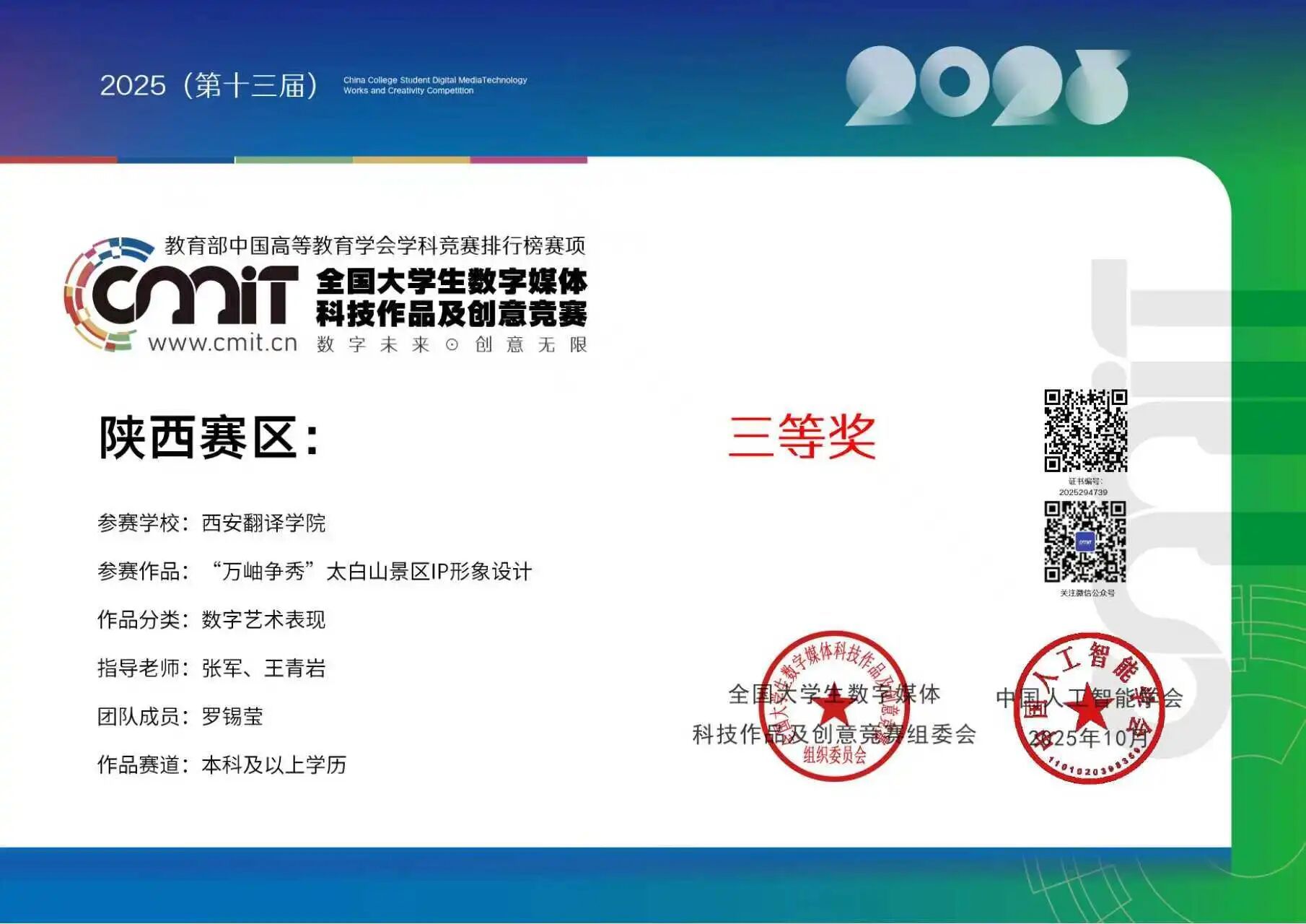 其中,由艺术与设计学院张军教师指导产品设计专业学生完成的《灵兽绮章-十二生肖文创产品设计》作品,以其独特的创意和扎实的技术应用,在众多参赛作品中脱颖而出,成功斩获全国总决赛三等奖,充分展现了我校学子的数字媒体创作水平。