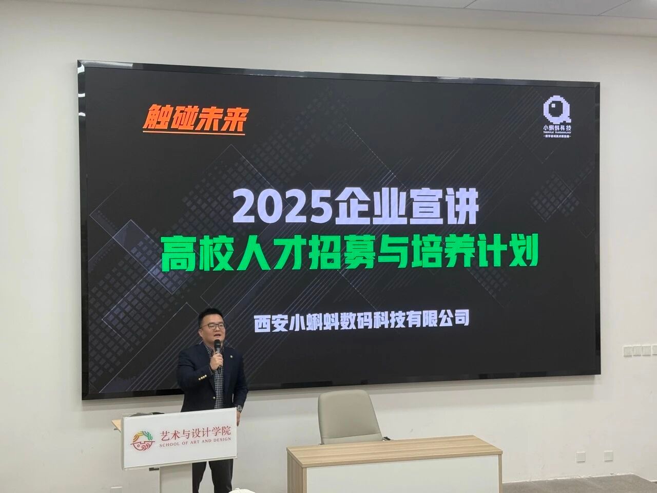为搭建艺术设计人才与游戏产业的对接桥梁,帮助同学们明晰行业需求、规划职业方向,西安小蝌蚪数码科技有限公司2025年企业宣讲会于2025年9月25日下午14:30在五号楼5117t教室举行,公司总经理刘建亲临现场,围绕行业趋势与企业发展展开深度分享,为在场学子与合作伙伴搭建起通往科技未来的沟通桥梁,现场互动热烈,掌声不断。