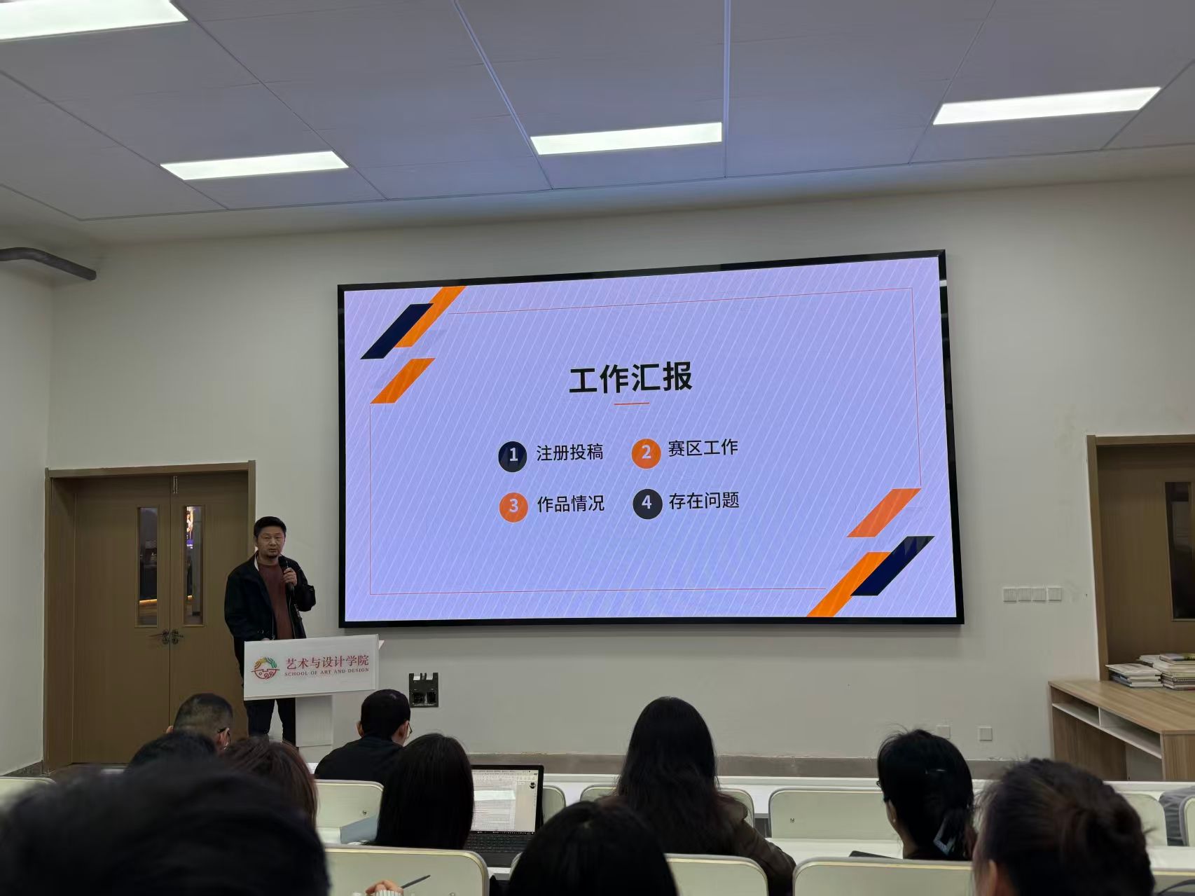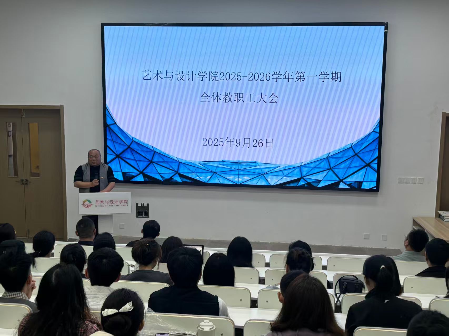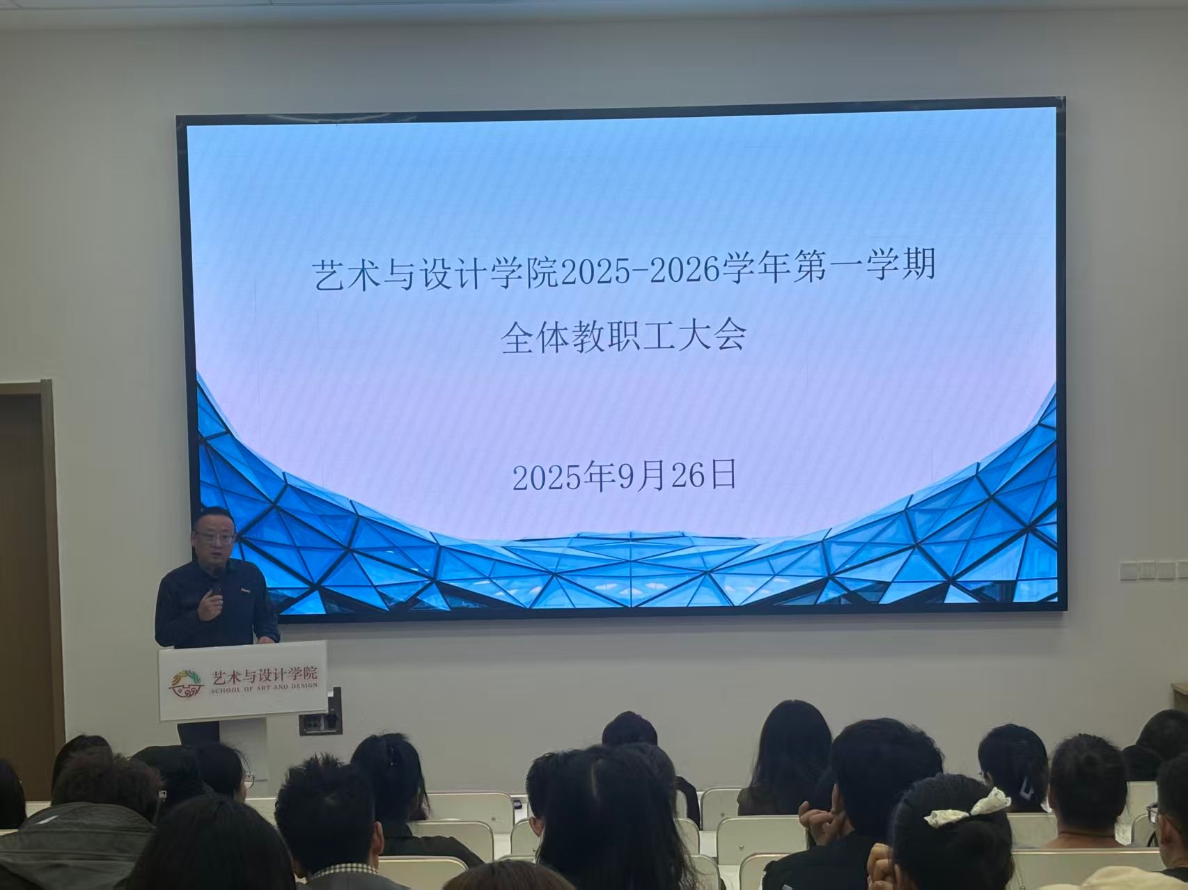 为进一步凝聚全院发展合力,推动学院在转型关键期稳步前行,9月26日下午,艺术与设计学院在5117T教室召开了全体教职工会议。院长董千、学院党委书记行政院长徐中、教学院长吴迪、科研院长马平、综合办主任、各系主任以及全体教职工出席了此次会议,会议由院长董千主持。