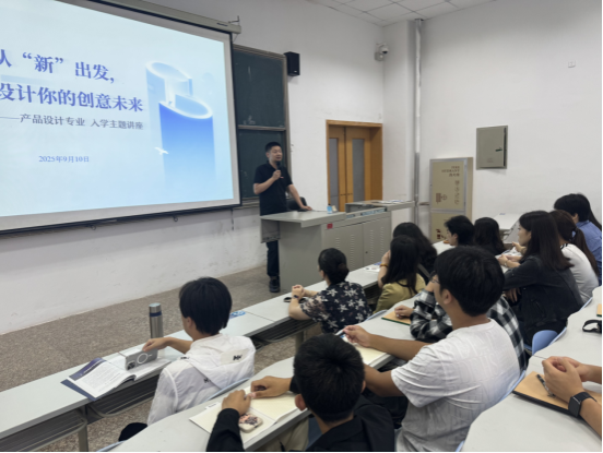 2025年9月10日下午,产品设计系2025级新生入学专业教育讲座顺利举行。本次活动以“从新出发,设计你的创意未来”为主题,旨在帮助新生深入了解专业特点、明确学习方向,更快地适应大学学习生活。系主任、专业教师及产品设计专业2025级全体新生参加了此次讲座。