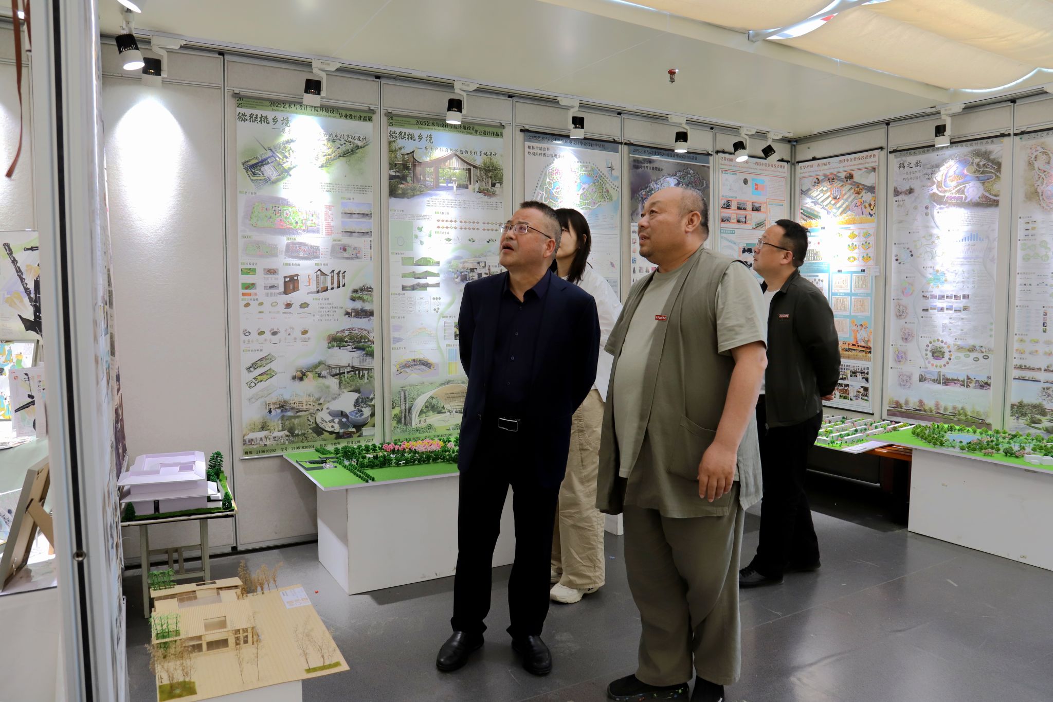 4月24日下午,校党委书记栾宏前往科技楼六楼天都艺术馆,参观艺术与设计学院2025年“归零·创生”毕业设计展,并就相关工作进行了指导。艺术与设计学院院长董千、学院党委书记、副院长徐中等陪同参观。
