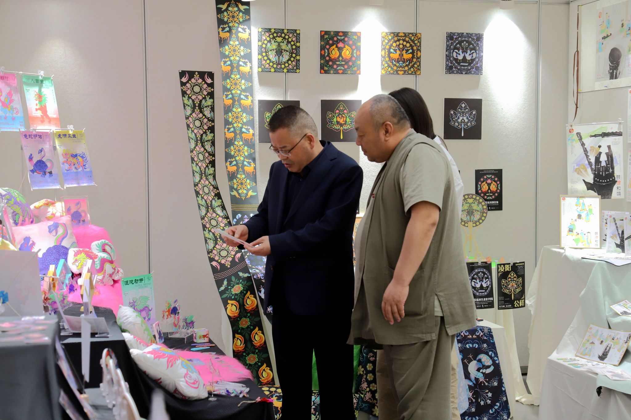 参观时,栾宏书记专注聆听指导教师对作品的介绍,不时驻足、微微俯身,从各个角度仔细端详作品的制作工艺与细节。栾宏对教师们严谨负责的教学态度和科学有效的教学方法给予高度肯定,对同学们展现出的创意与才华赞赏有加。他指出,这些作品题材丰富、形式多样,从不同维度诠释了艺术与科技的共生,充分展示了我校师生在教学实践中的丰硕成果。