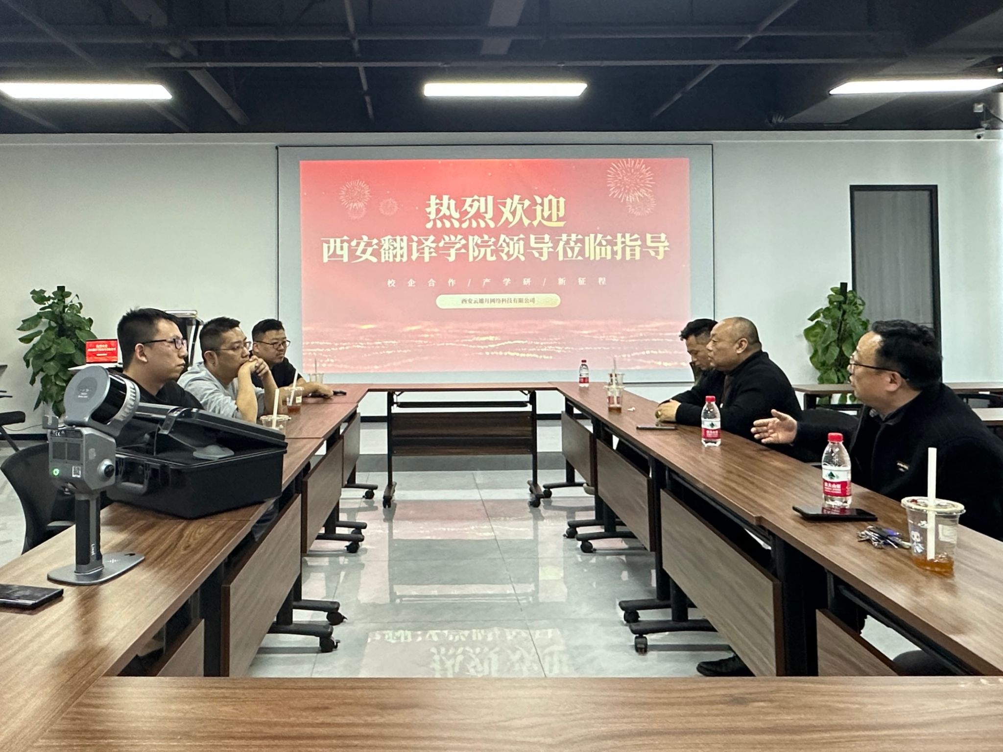 云遮月网络科技有限公司负责人对学院一行表示热烈欢迎,详细介绍了公司的发展历程、业务范围、企业文化及人才需求,并分享了行业发展的最新趋势和对人才的期望。双方就实习基地建设、人才培养方案优化、产学研合作等方面进行了深入探讨,并达成了初步合作意向。