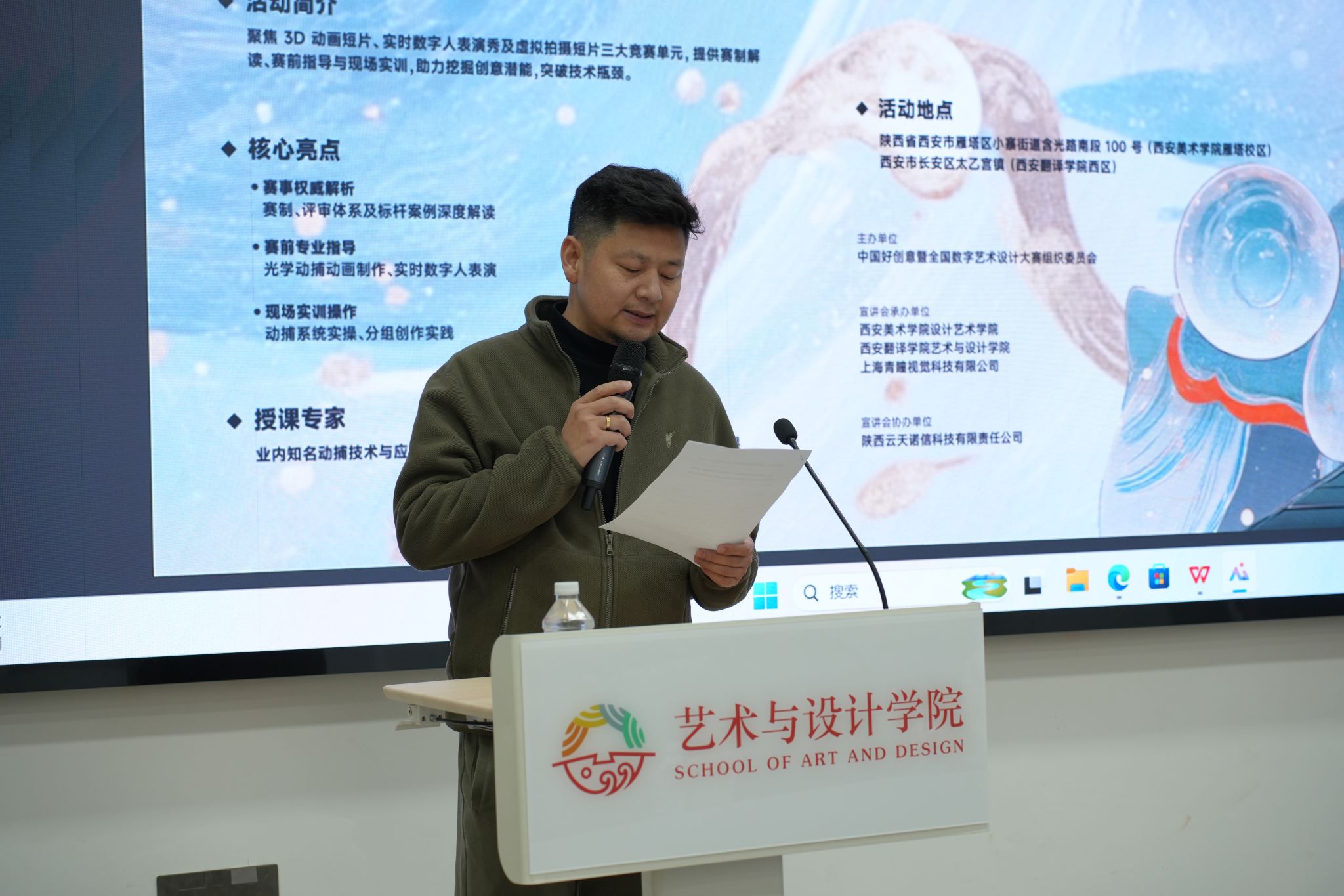 2025年3月9日,第19届中国好创意青瞳视觉“数字造梦”全国宣讲计划陕西站——“数字人”专场,在西安翻译学院圆满落幕。本次活动由中国好创意暨全国数字艺术设计大赛组委会主办,西安美术学院设计艺术学院、西安翻译学院艺术与设计学院、上海青瞳视觉科技有限公司承办,陕西云天诺信科技有限责任公司协办,大赛旨在落实国家数字创意产业远景规划,转化高等院校原创知识产权,深度挖掘、选拔和推广中国创意界的精英人才和优秀作品,引领学科发展推动专业建设,成为高校艺术创意领域的风向标。